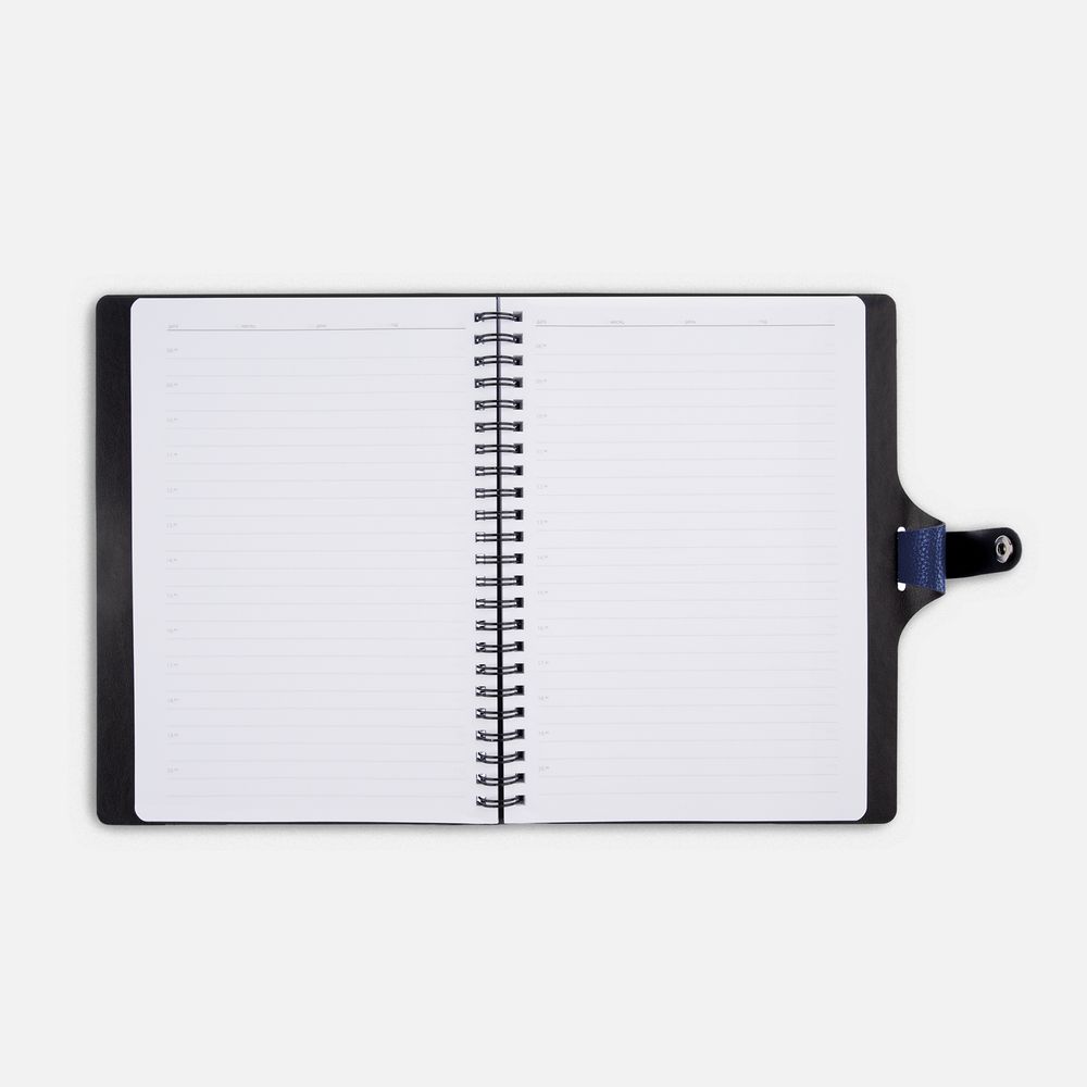 Ежедневник с гибкой обложкой, выполнен из материалов La Fite, синий НН и Waltz черный АА.