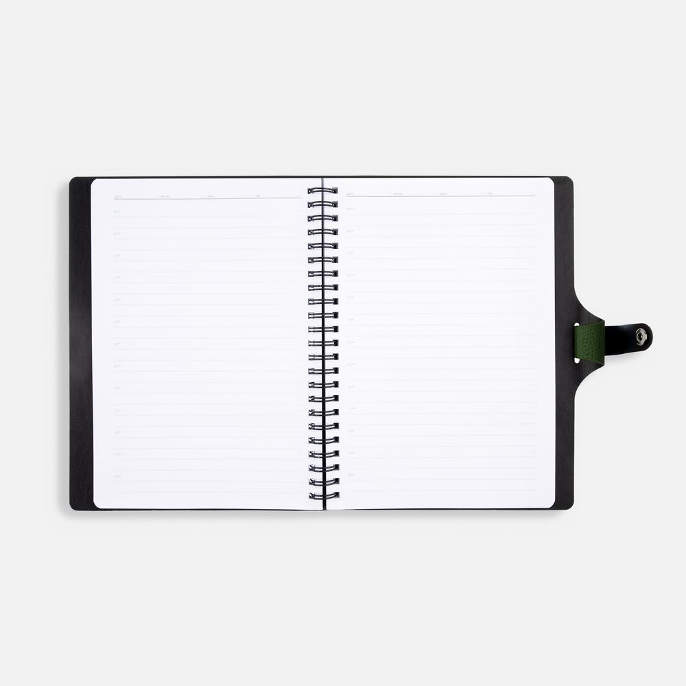 Ежедневник с гибкой обложкой, выполнен из материалов La Fite, зеленый FF и Waltz черный АА.