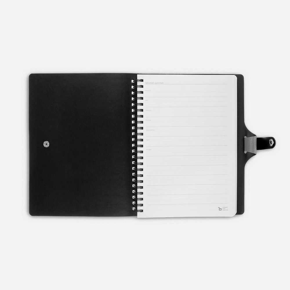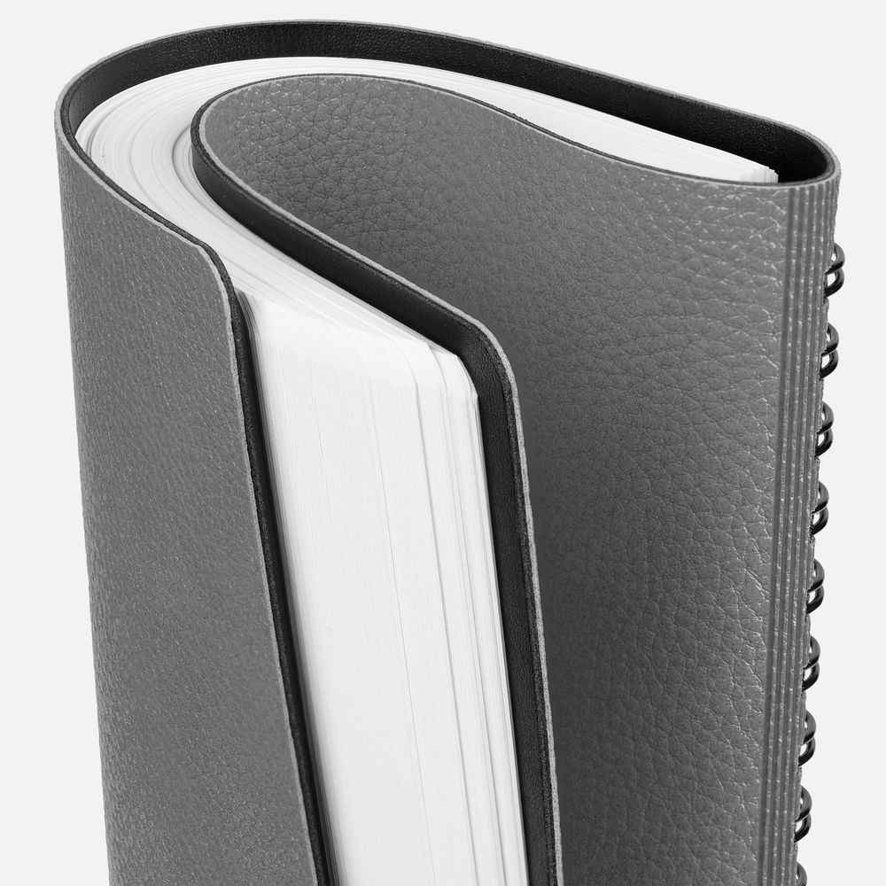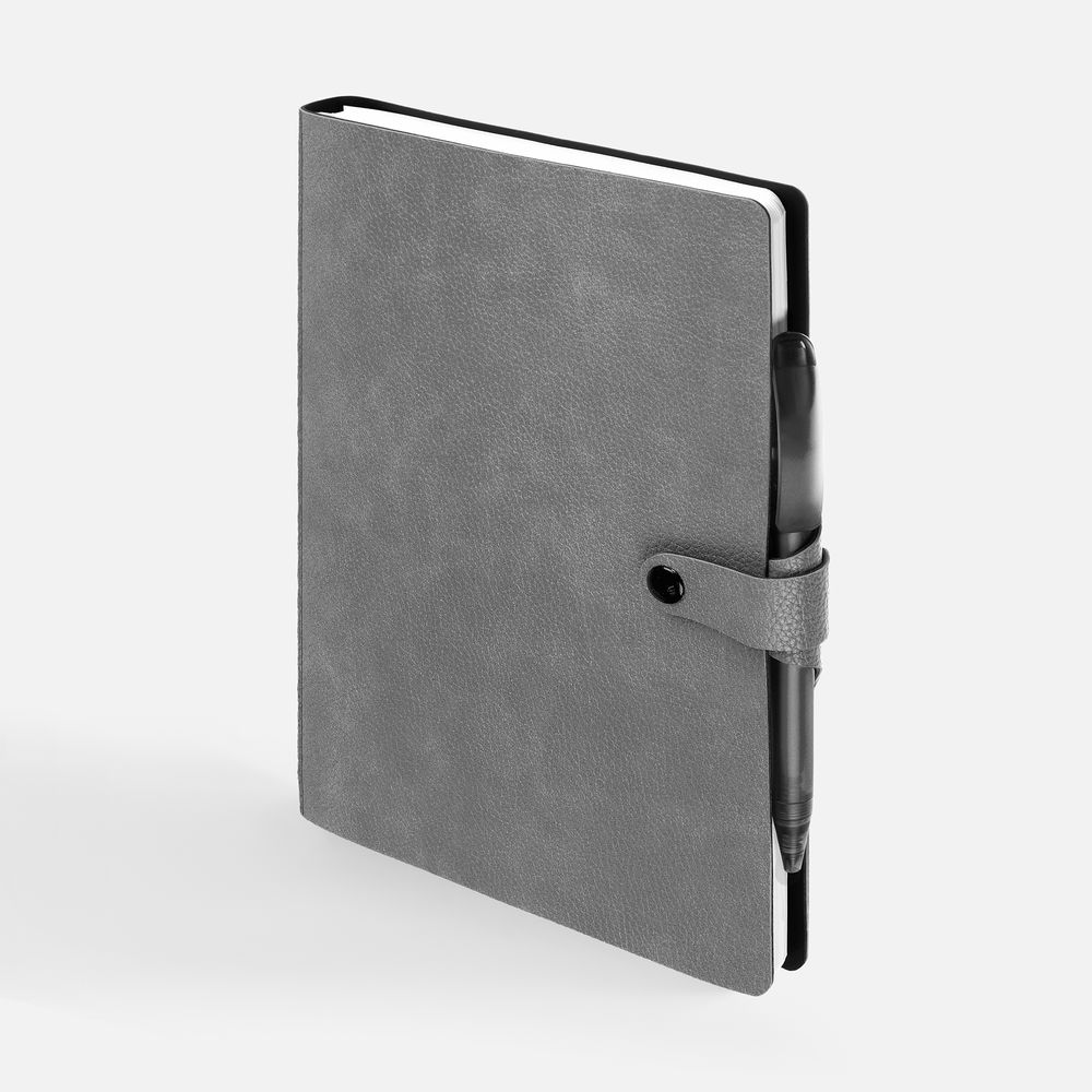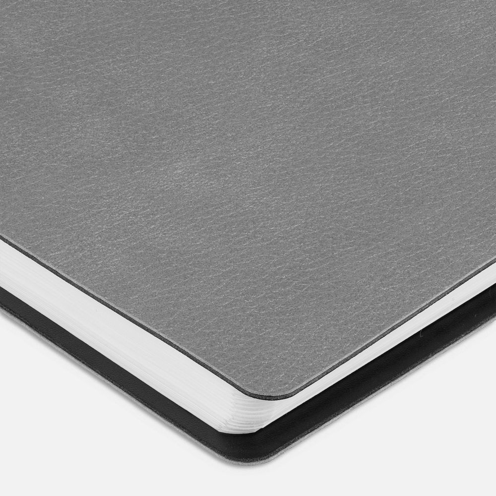 Ежедневник с гибкой обложкой, выполнен из материалов La Fite, серый СС и Waltz черный АА.
