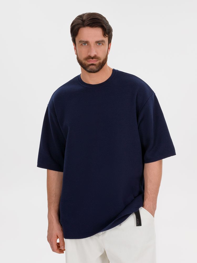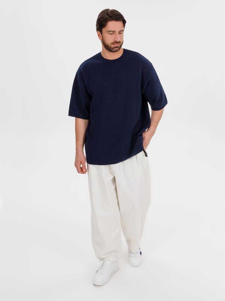 Siluetti Volumica — плотный вязаный джемпер-футболка прямого кроя с круглым вырезом и спущенной линией плеча. Фирменная бирка из силиконовой ленты станет интересной деталью, привлекающей внимание на фоне общей лаконичности модели.