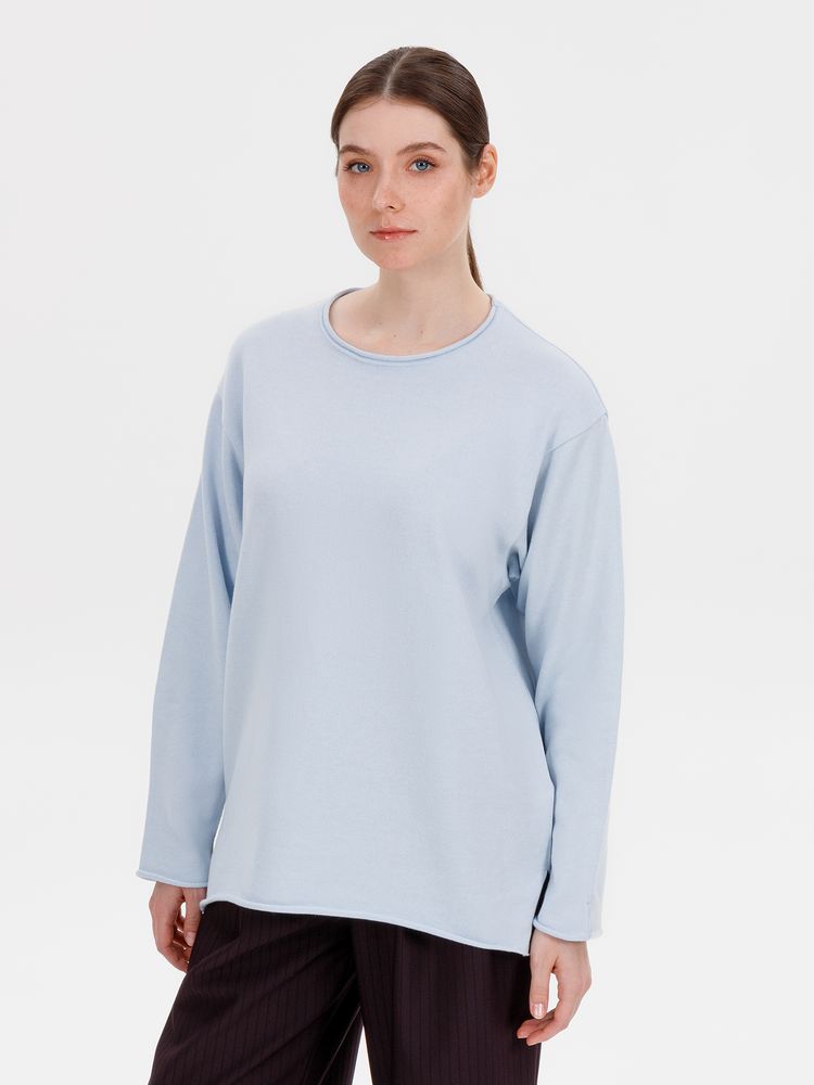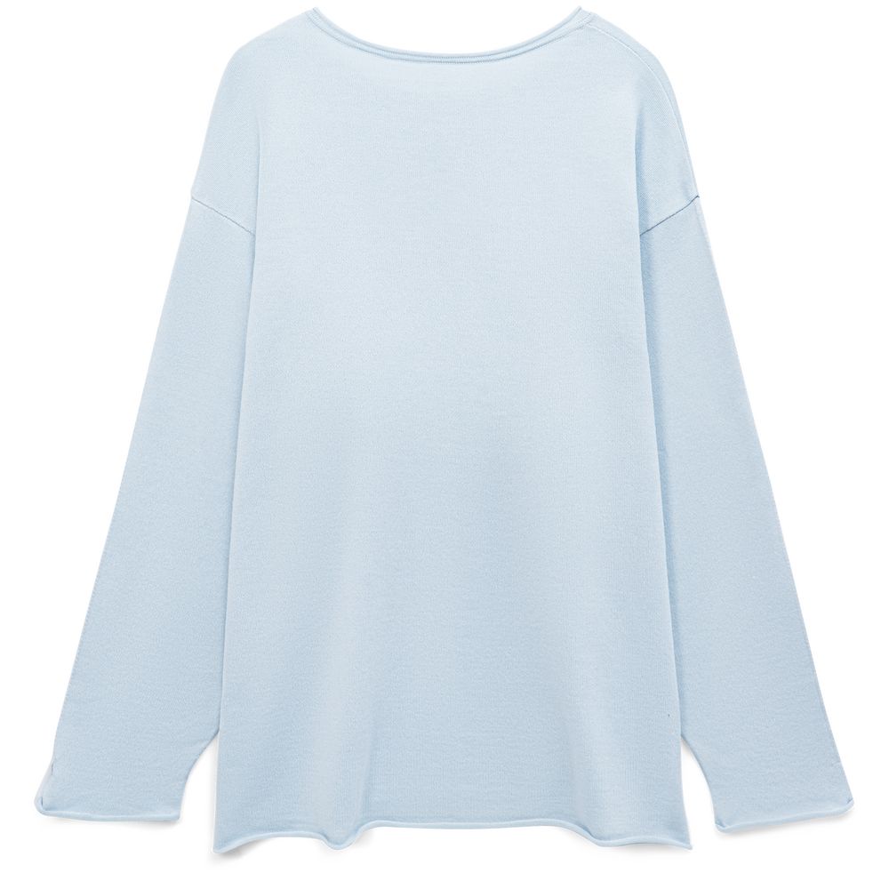 Лонгслив Fuori средней плотности с широким воротом, спущенной линией плеча и свободно подворачивающимися краями по низу, на рукавах и вороте, которые добавляют модели еще большей расслабленности. Прозрачная бирка с логотипом бренда на рукаве не нарушает минималистичности образа.