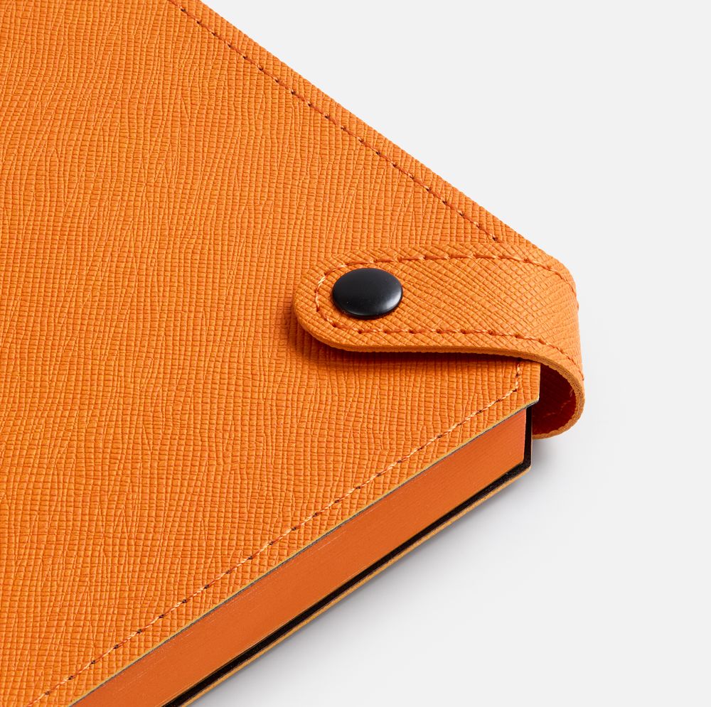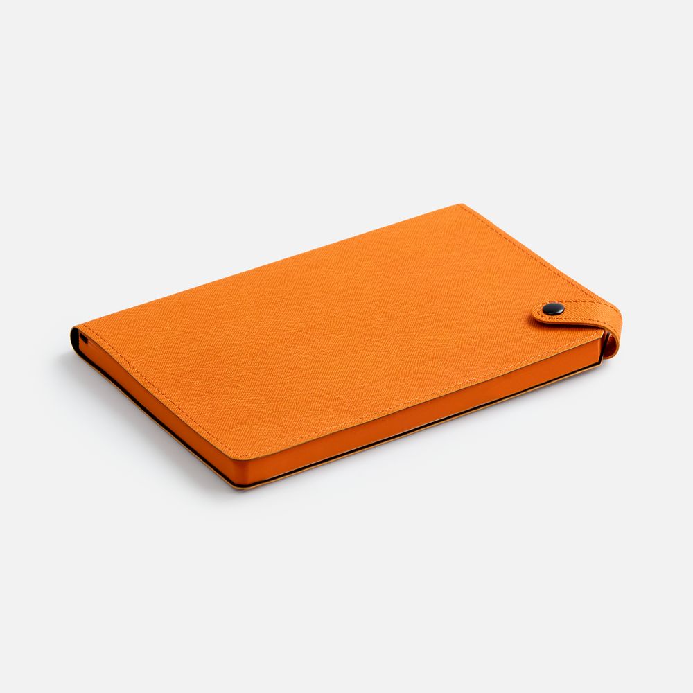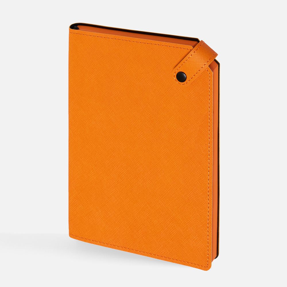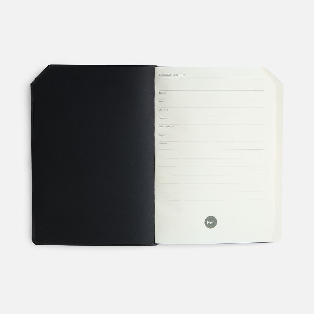 Ежедневник с гибкой обложкой, выполнен из материала Espresso, дополнен ляссе черного цвета и хлястиком на кнопке.