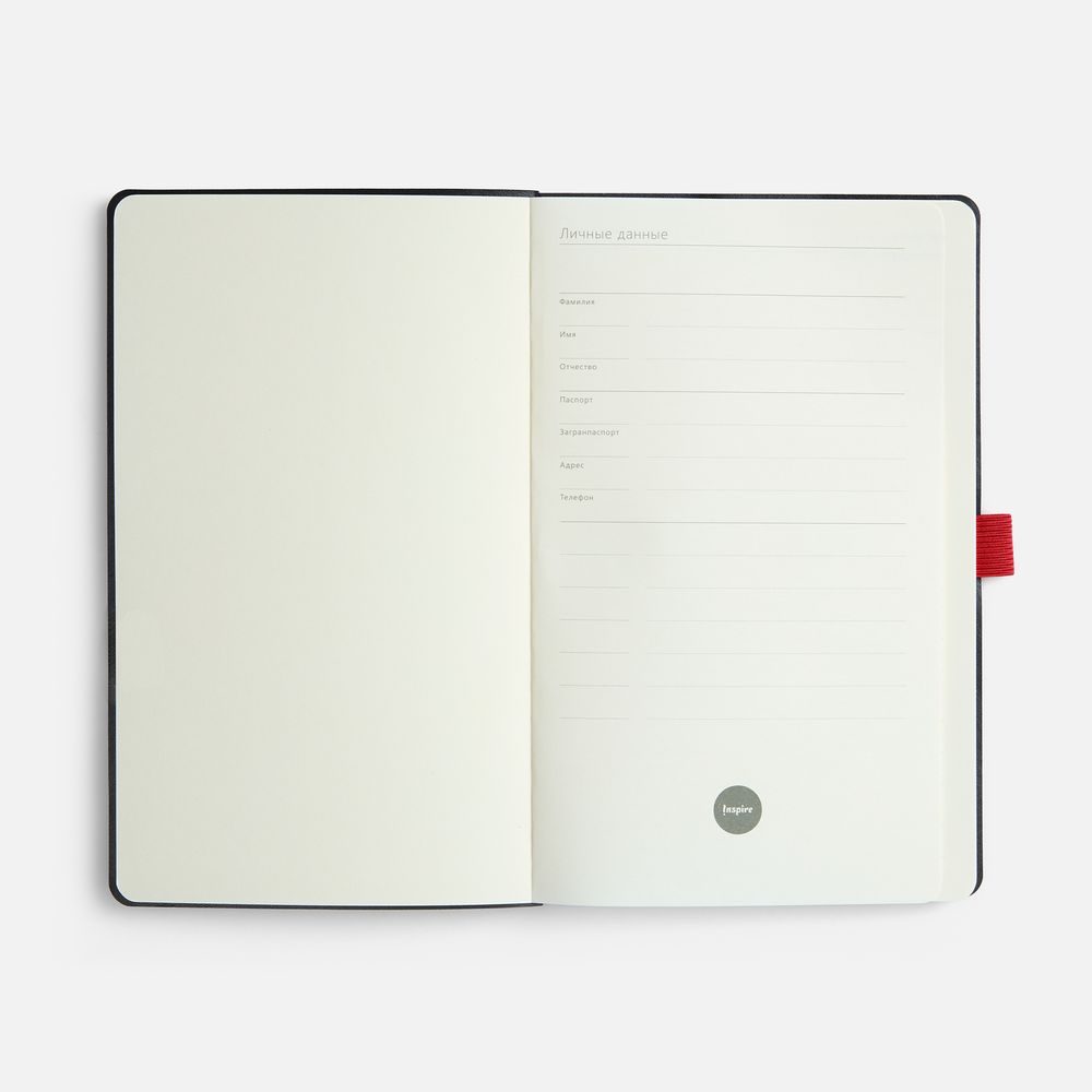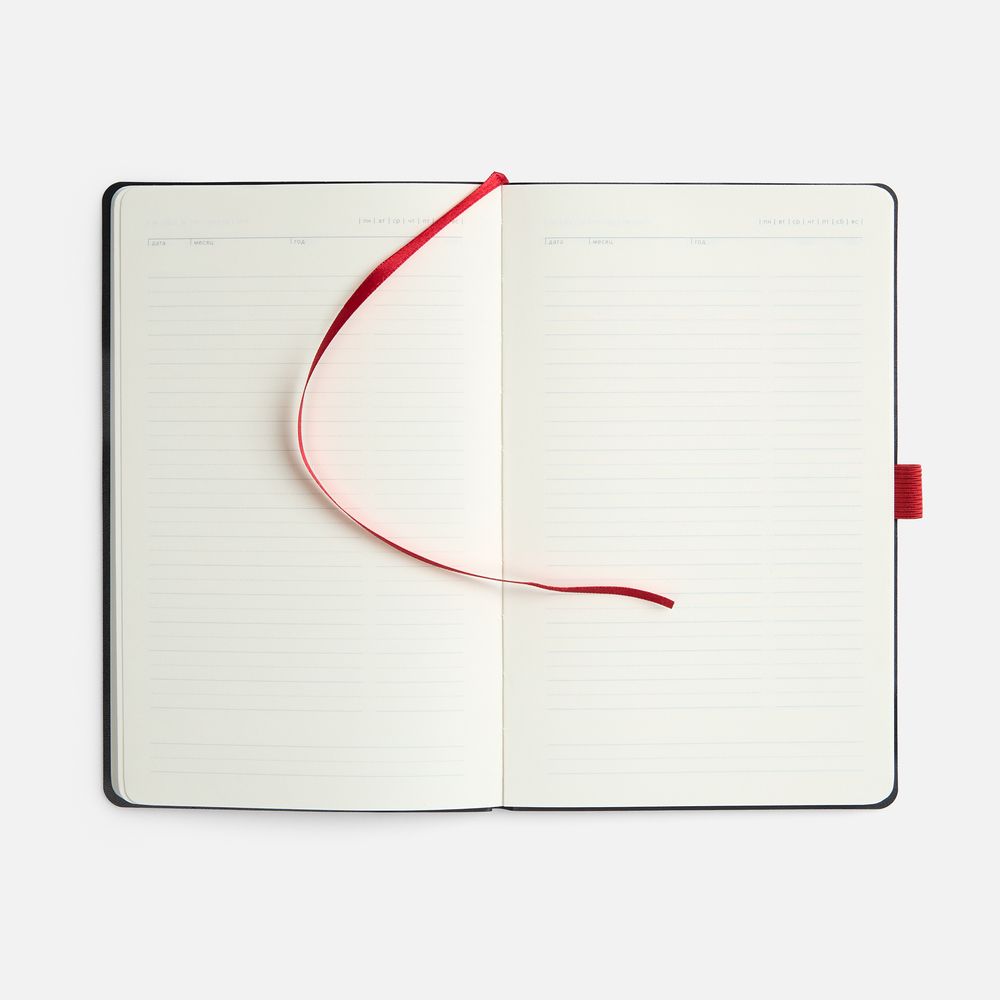 Ежедневник с гибкой обложкой, выполнен из материала Espresso, дополнен цветными ляссе и петлей-резинкой для ручки.
