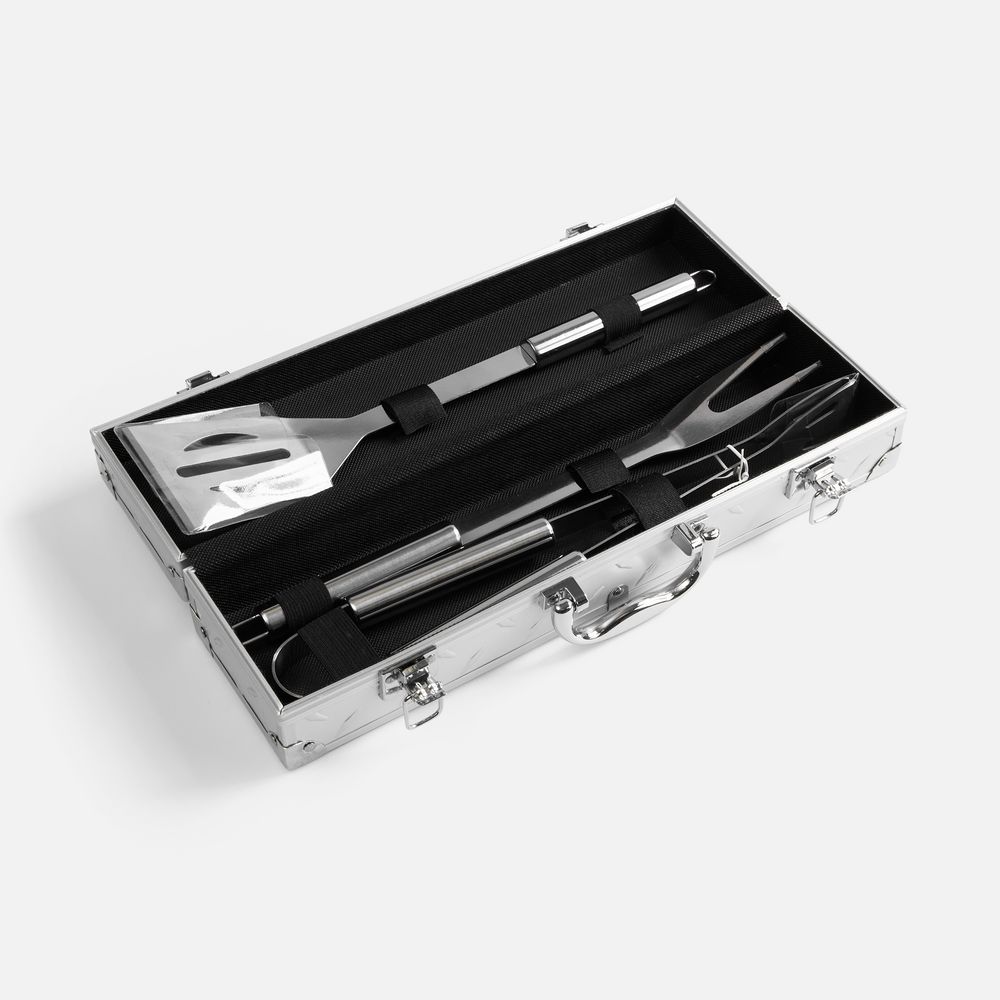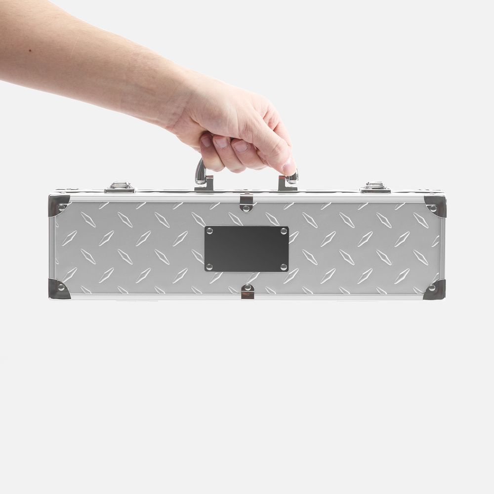 Hard Work. Покой нам только снится.В набор входят: щипцы, вилка и лопатка. Поставляется в алюминиевом кейсе с фирменным паттерном Hard Work.