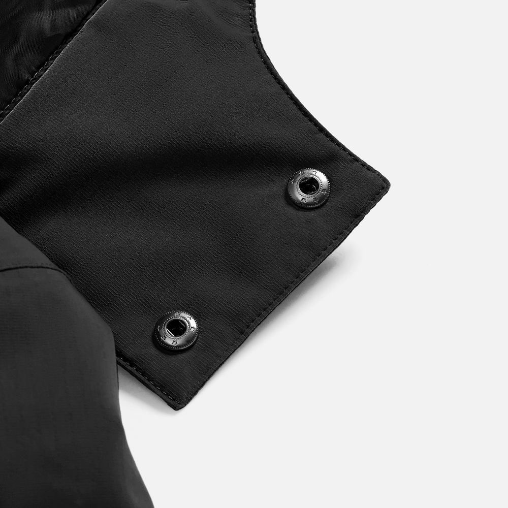 - Отстегивающийся капюшон с утяжкой и кнопками для плотного прилегания и защиты горла