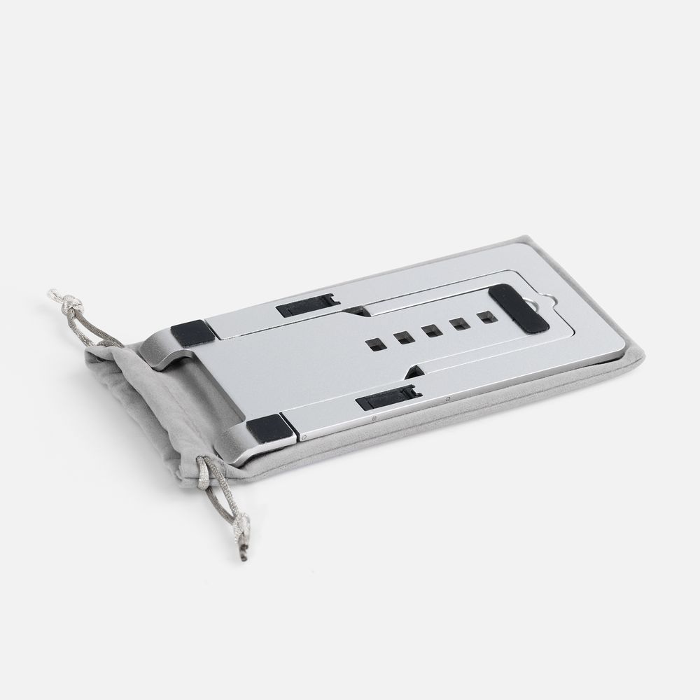 Подставка складывается и не занимает много места, ее удобно взять с собой на встречу или в дорогу. Поставляется в тканевом мешочке и коробке из картона.