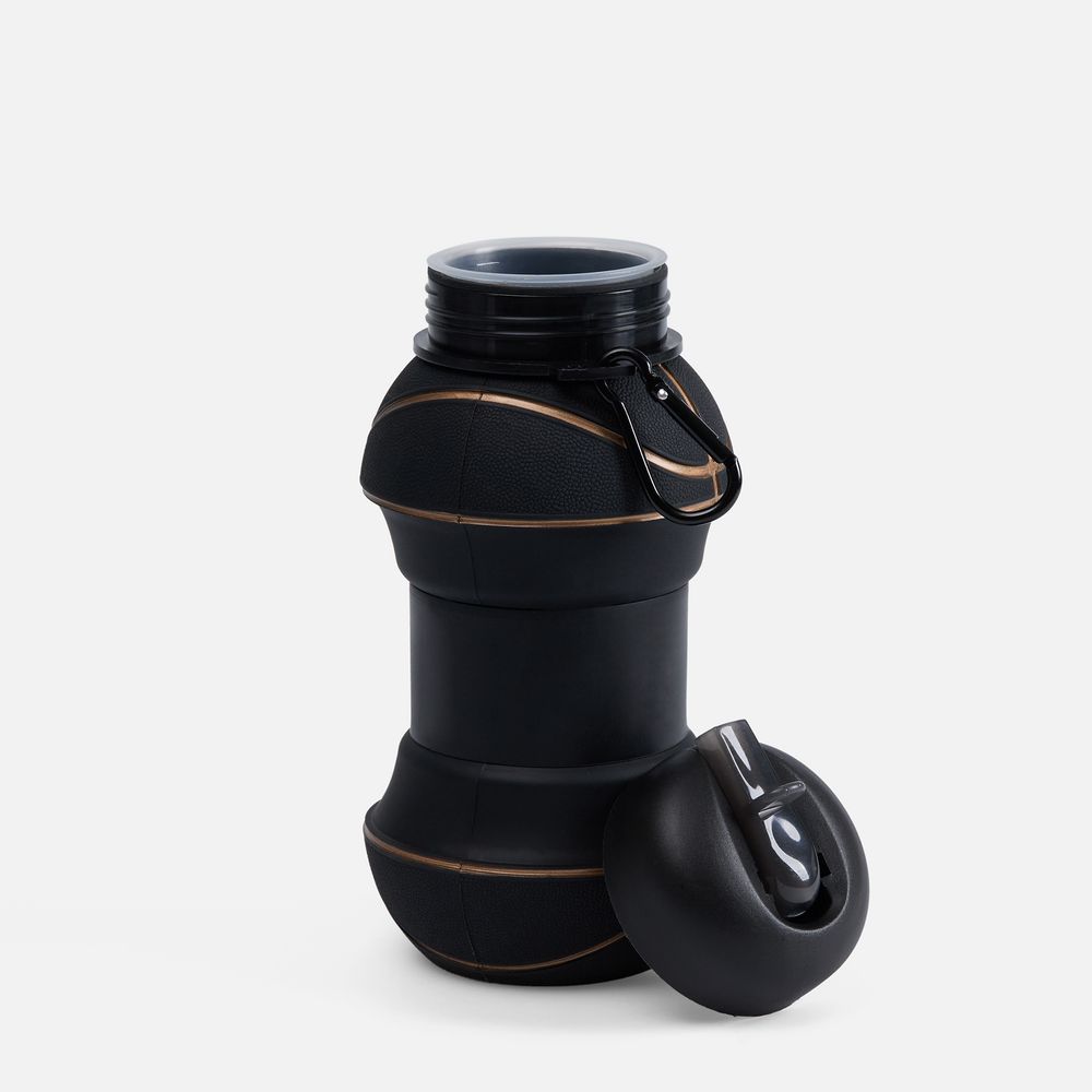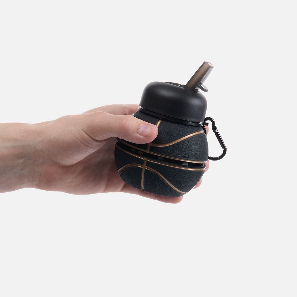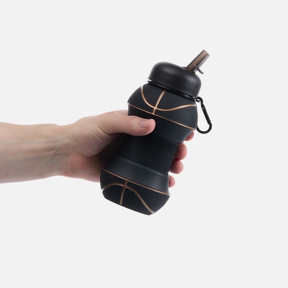 Складная бутылка Basketball Flex — подходящий вариант подарка как для игроков, так и для фанатов баскетбола. За вау-эффект отвечает скрытое нанесение: печать осуществляется на съемном силиконовом кольце в середине изделия и становится заметна, только если раскрыть бутылку полностью. Для удобства ношения бутылка оборудована карабином, а при складывании ее высота уменьшается вдвое, так что пустой она совсем не занимает места.