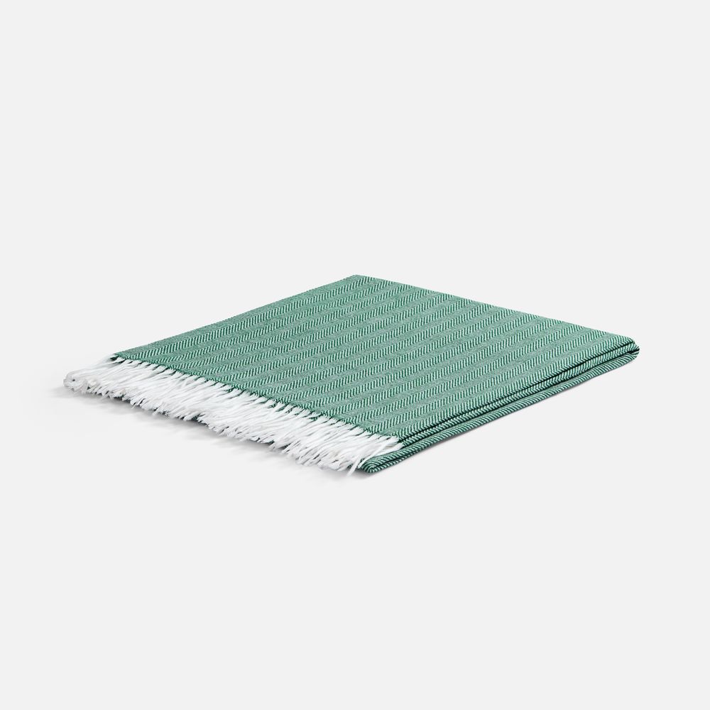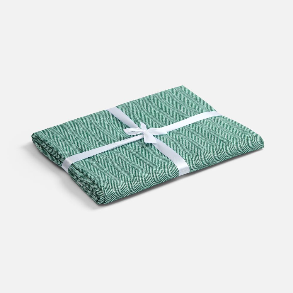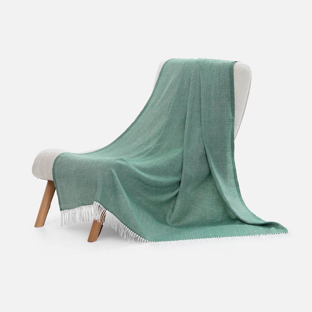 Классический рисунок «елочка» не слишком привлекает внимание, но в то же время добавляет изюминки. Смешанный состав пряжи продлевает срок службы и существенно облегчает уход за пледом.