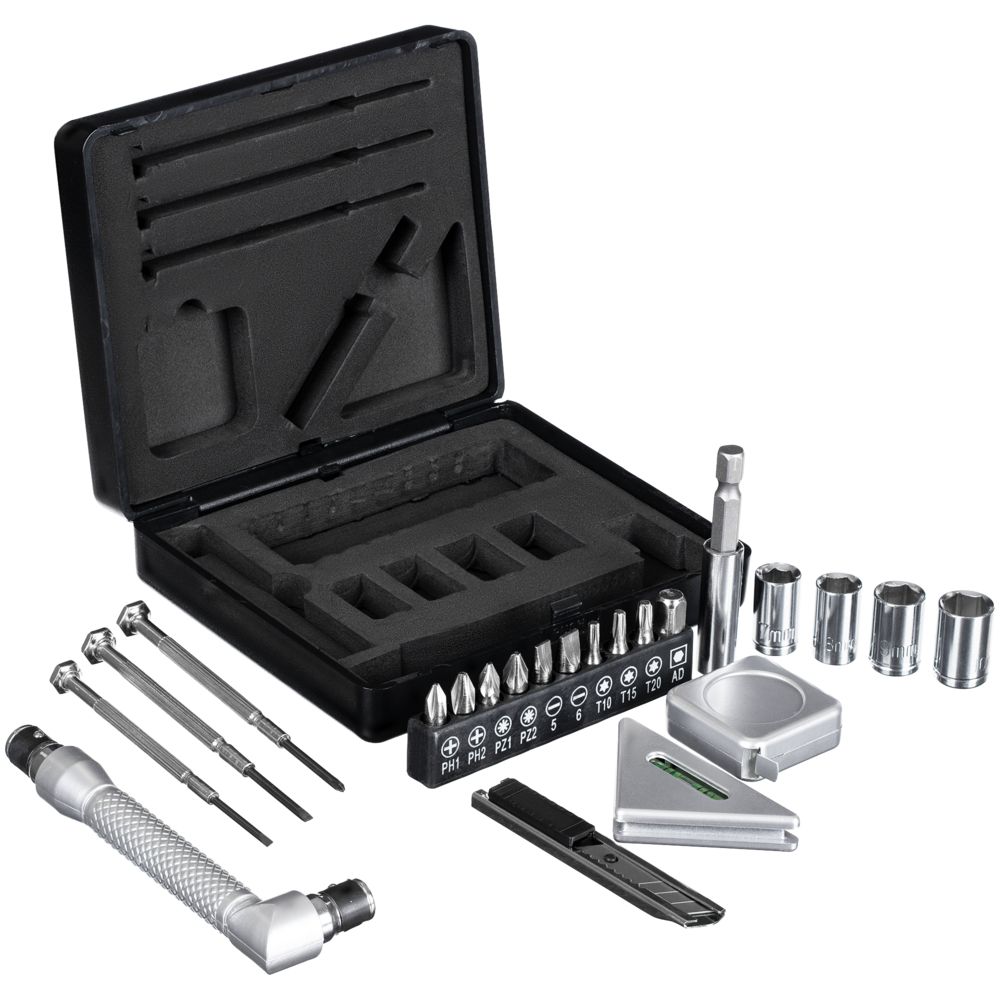 Каждая деталь — результат тщательно проведенных исследований, каждое сочетание материалов оптимально подходит для конкретного назначения. 22 предмета позволяют с легкостью произвести мелкий ремонт или выполнить точные измерения.