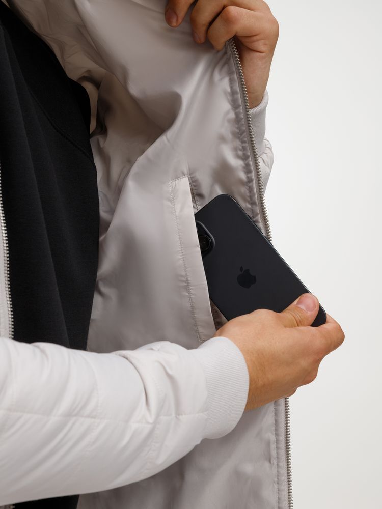 Материал: верх - нейлон 100%, плотность 35 г/м²; утеплитель - полиэстер 100%, плотность 100 г/м²; подкладка - полиэстер 100%, 230Т, плотность 65 г/м²