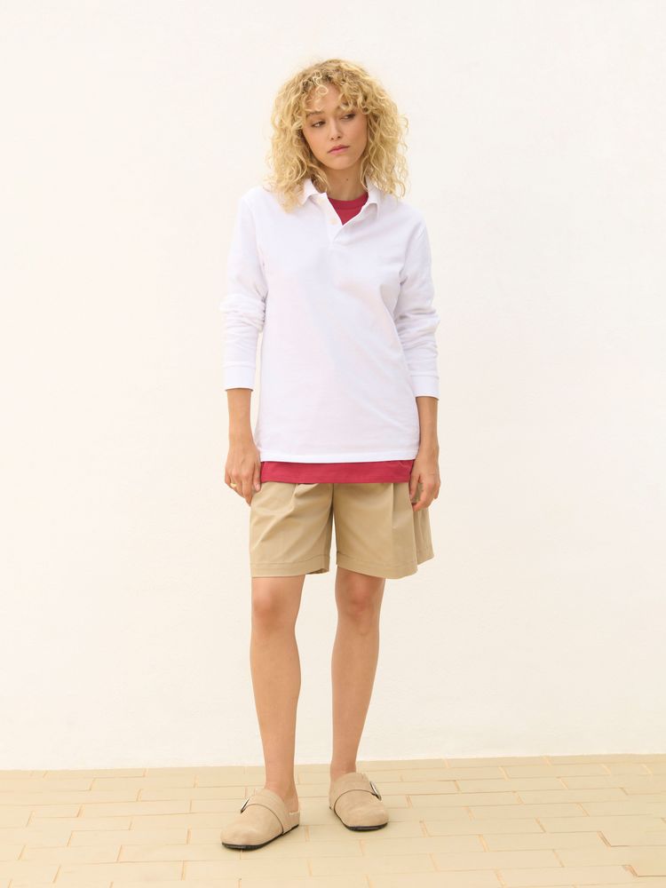 Рубашка поло унисекс прямого силуэта и с длинным рукавом.