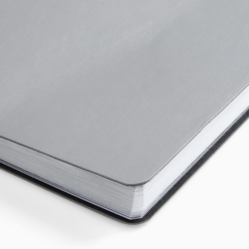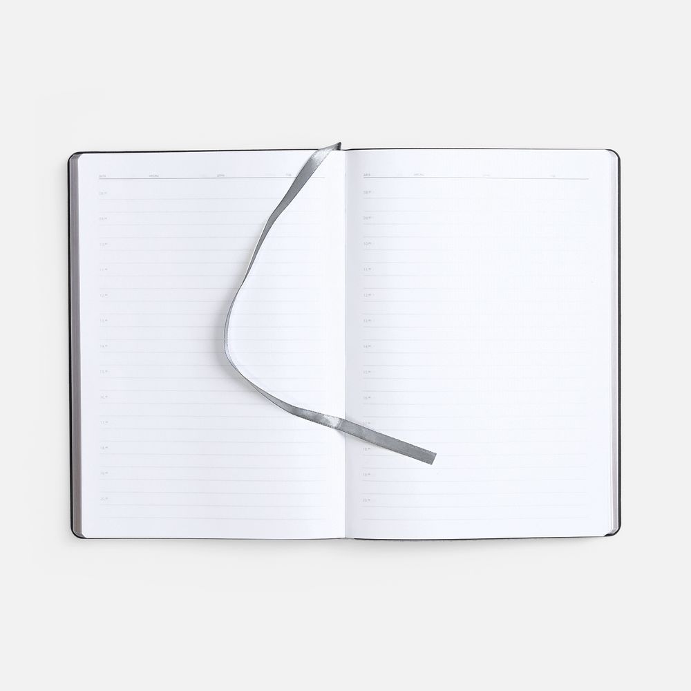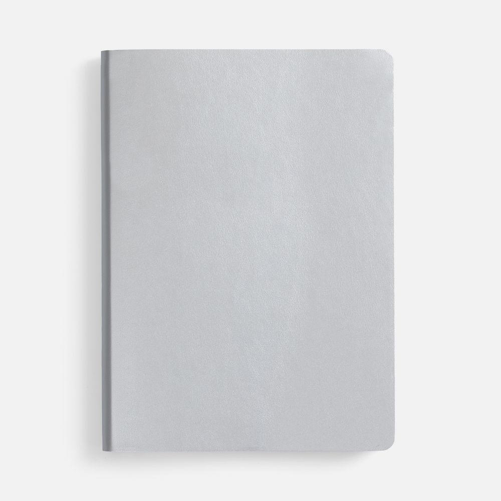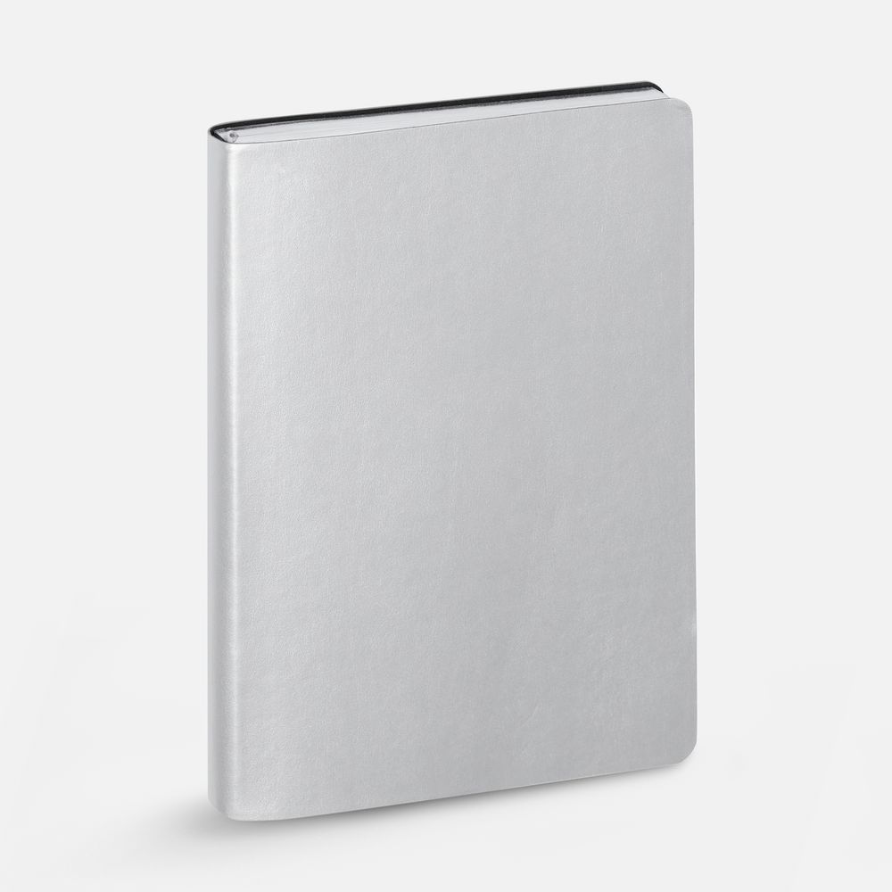 Модная интерпретация статусного ежедневника — с металлизированным обрезом и гибкой обложкой. Ежедневник с гибкой обложкой, выполнен из материала Waltz, серебро DD, дополнен ляссе в цвет обложки.