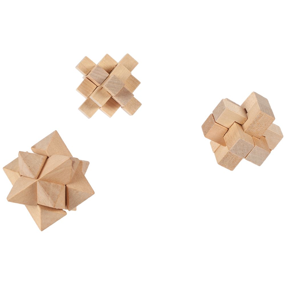 Деревянные фигуры не так просты, как кажется. Эта игра развивает пространственное мышление, тренирует терпение и наблюдательность. В наборе 3 деревянных головоломки, инструкция, мешочек.