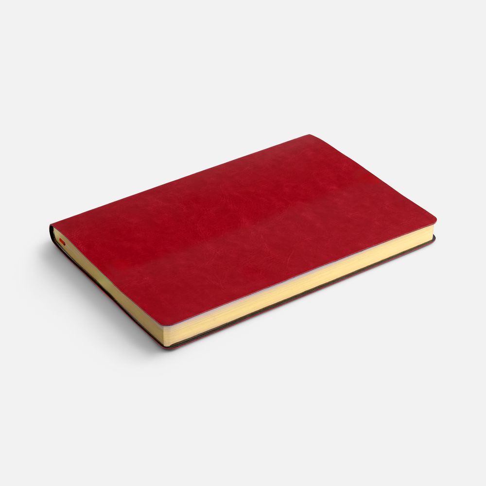 Модная интерпретация статусного ежедневника — с металлизированным обрезом и гибкой обложкой. Ежедневник с гибкой обложкой, выполнен из материала Nebraska, красный PP, дополнен ляссе красного цвета.