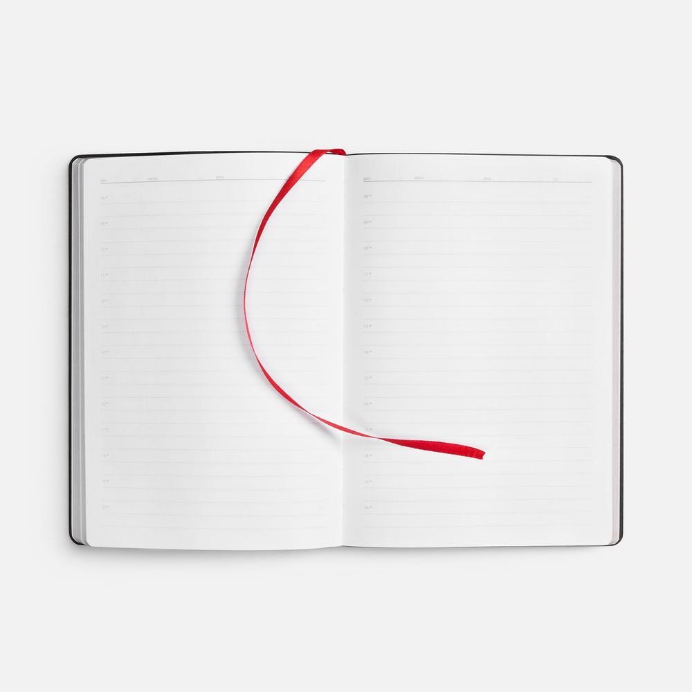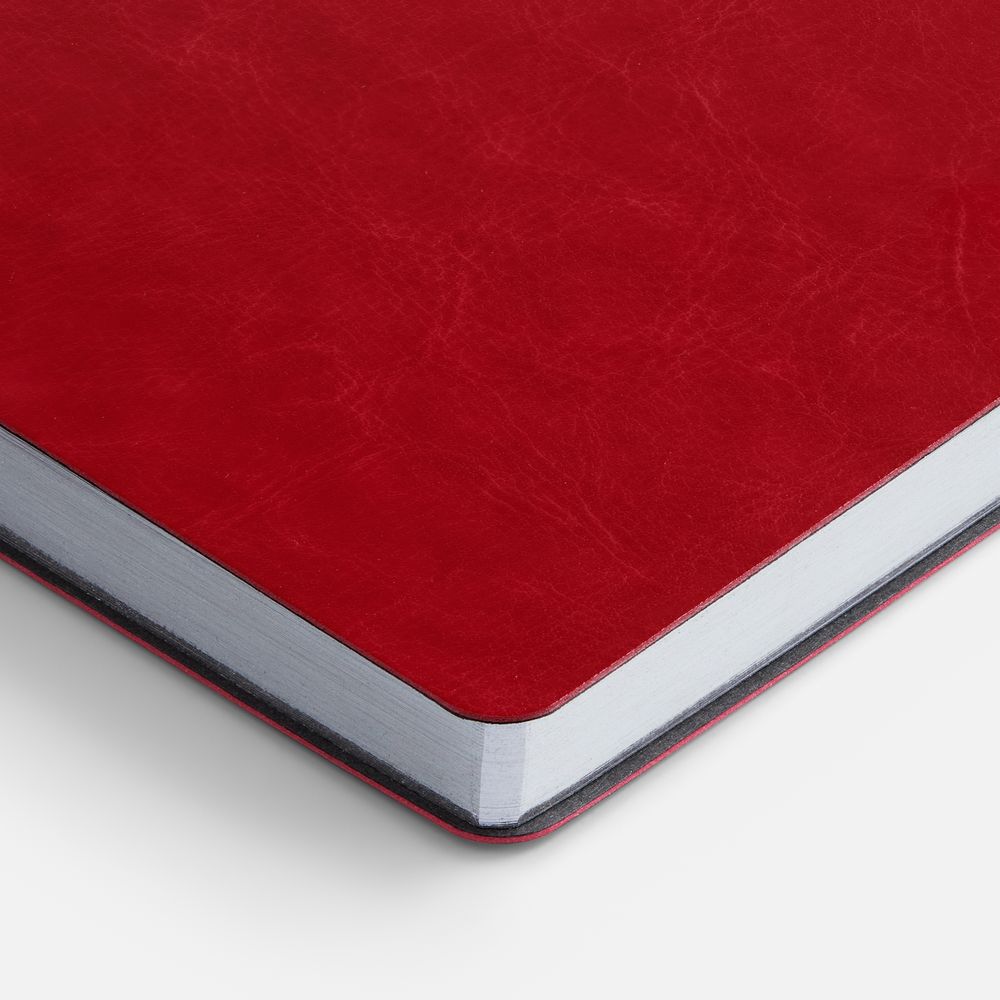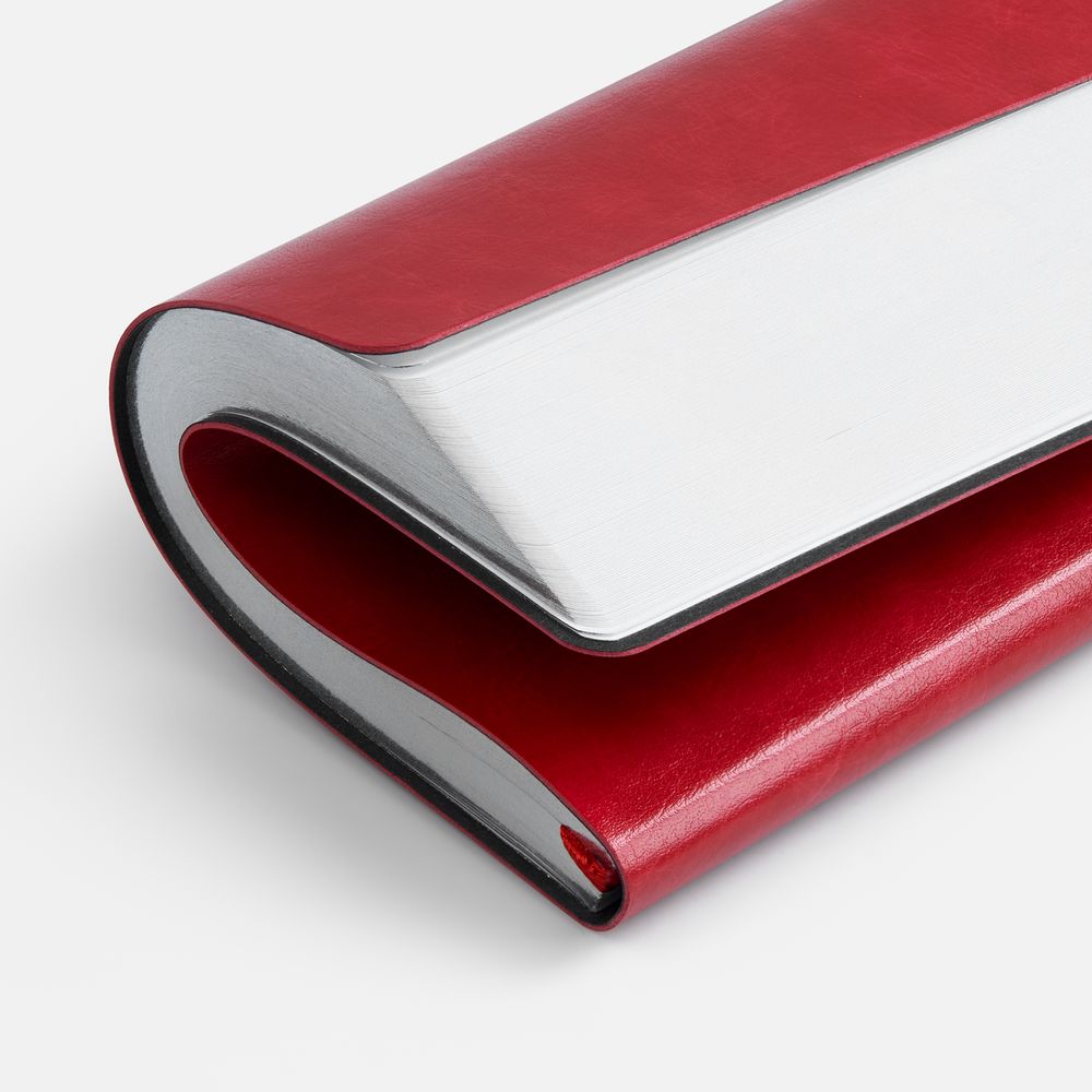 Модная интерпретация статусного ежедневника — с металлизированным обрезом и гибкой обложкой. Ежедневник с гибкой обложкой, выполнен из материала Nebraska, красный PP, дополнен ляссе красного цвета.