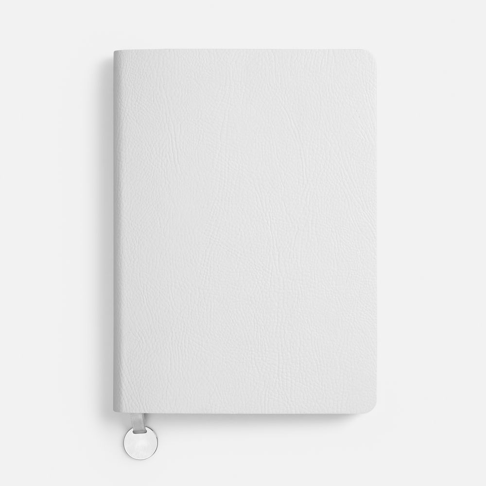 Недатированный ежедневник с гибкой обложкой из фактурного материала La Fite и металлическим шильдом на ляссе и ручка в тон, упакованные в подарочную коробку из дизайнерского картона.