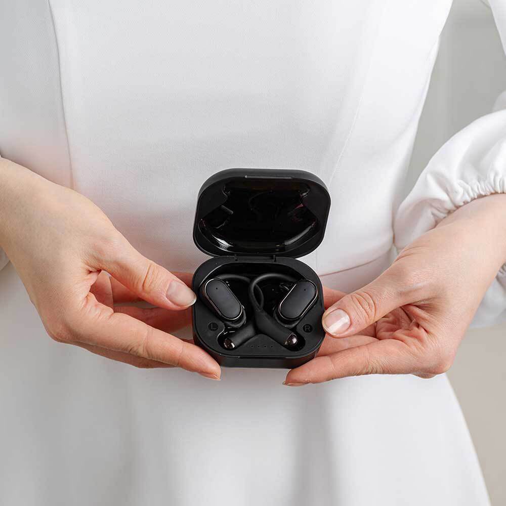 Беспроводные эргономичные наушники средней ценовой категории удобны для любых активностей на открытом воздухе. Ушные раковины в них открыты, при этом за счет надежного крепления наушники хорошо удерживаются на своем месте. Благодаря направленным динамикам все окружающие звуки в них будут слышны, что особенно важно для безопасности на велопрогулке или пробежке. Можно разговаривать по телефону, параллельно продолжая слушать фоновую музыку, или использовать в офисе, не выпадая при этом из общего рабочего процесса вокруг.