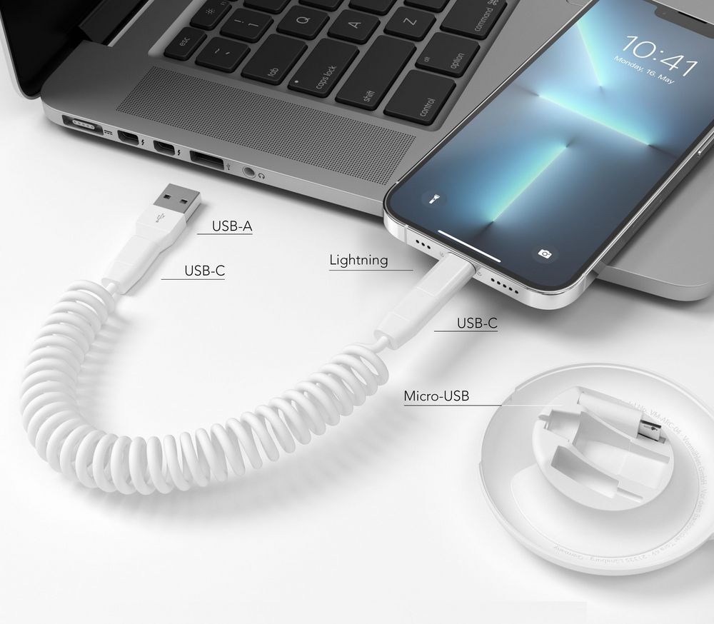 Allroundo Еco — экологичный компактный универсальный кабель для быстрой зарядки и передачи данных (в конфигурации с USB-C на USB-C), который более чем на 75% состоит из переработанных материалов. Витой кабель, длина которого достигает 90 см, обеспечивает еще большую свободу передвижения во время процесса зарядки. В комплект входят адаптеры с разъемами USB-A, microUSB и Lightning, поэтому кабель подходит для всех современных устройств.