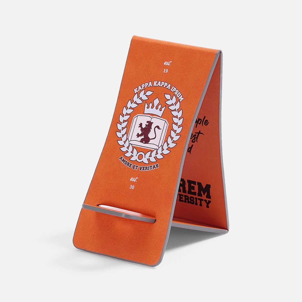 Складная подставка для телефона с вырубкой под шнур зарядного устройства. Выполнена из материала Petrus.