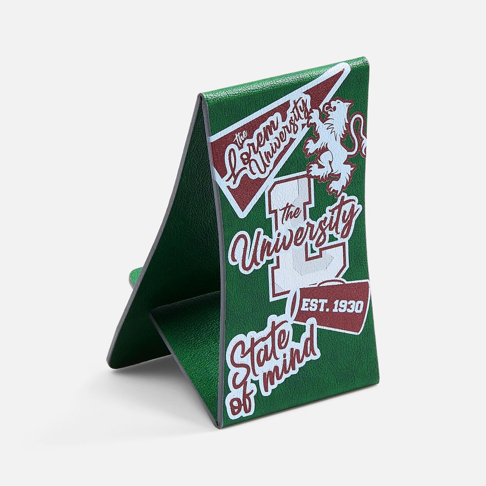 Складная подставка для телефона с вырубкой под шнур зарядного устройства. Выполнена из материала Petrus.