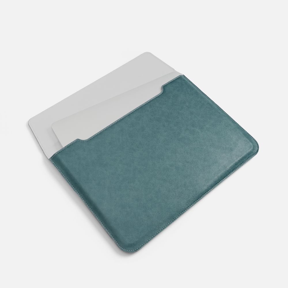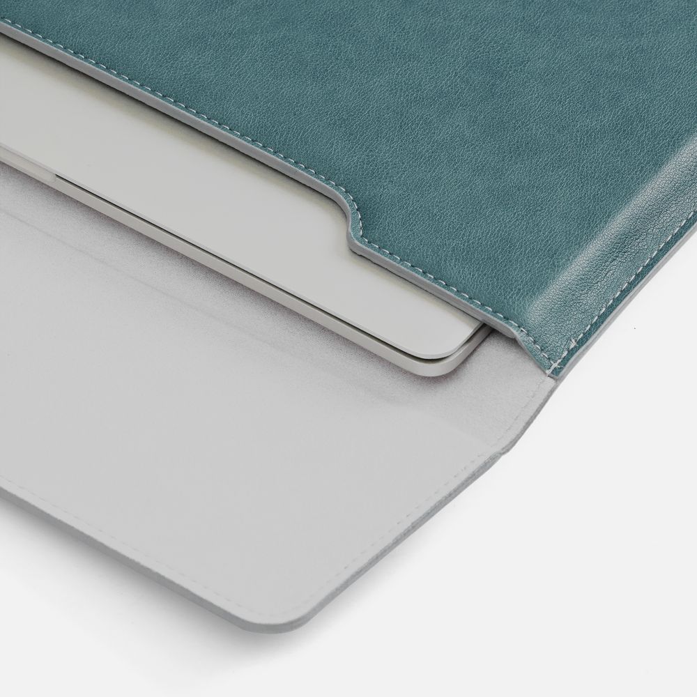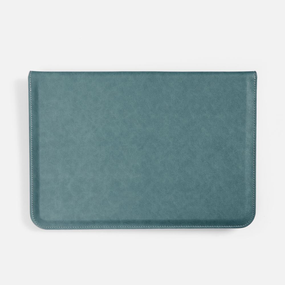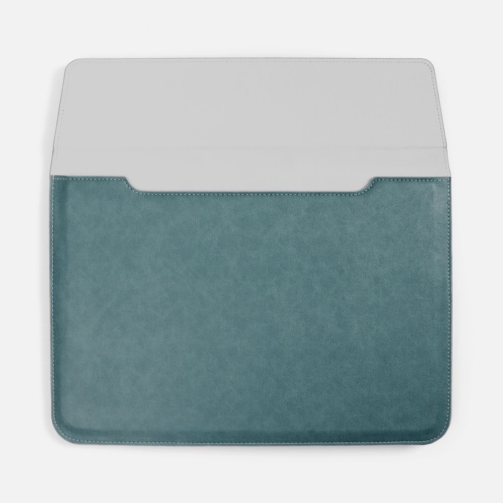 Чехол для ноутбука с диагональю до 15,6 выполнен из материала Petrus, голубой JJ, дополнен окрашенным срезом края серого цвета. Можно использовать в качестве папки для бумаг.
