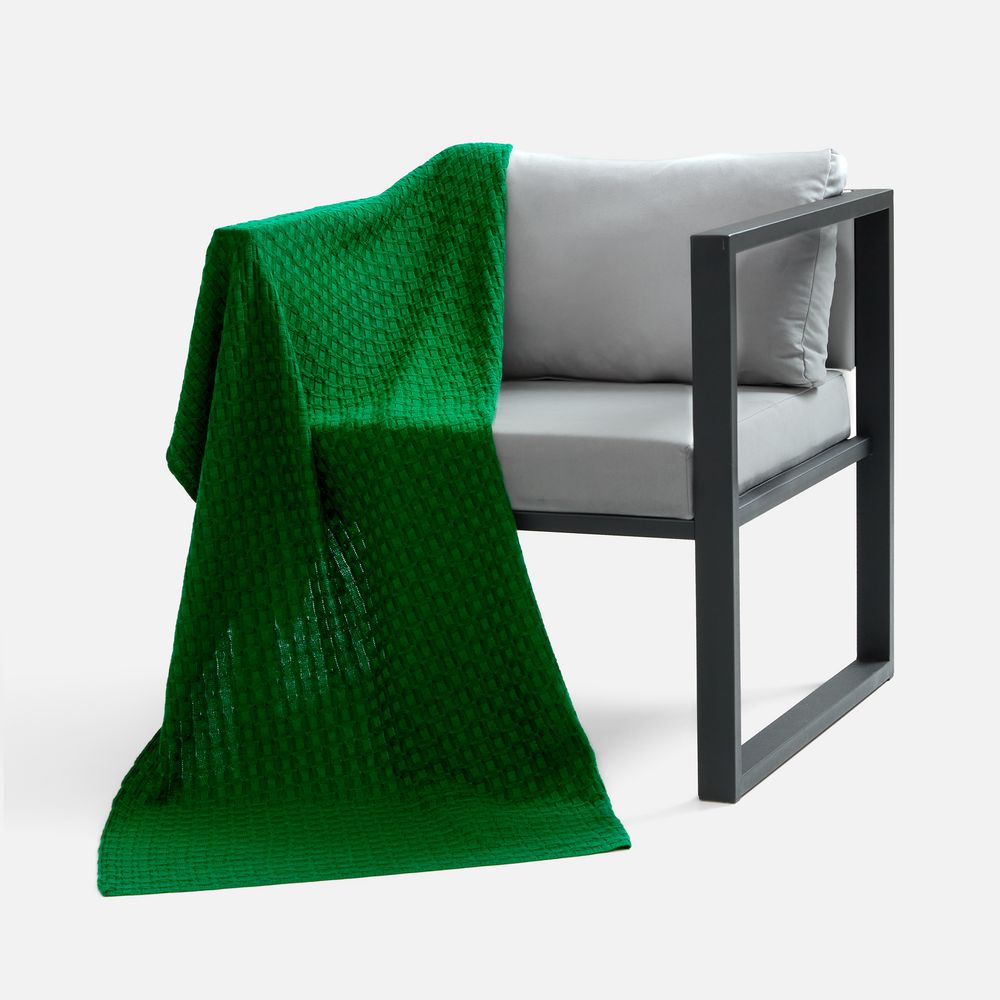 Плед с вывязанным логотипом и рельефным узором в фирменном цвете вашей компании.