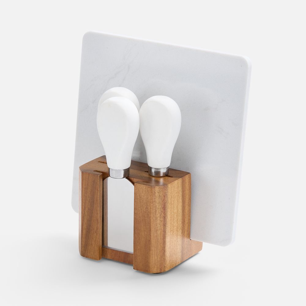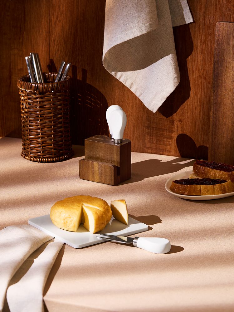 Marmara — компактный сырный набор с мраморной доской и ножами на деревянной подставке. Стильный и удобный, он превращает обычный перекус в маленький гастрономический праздник.В наборе: