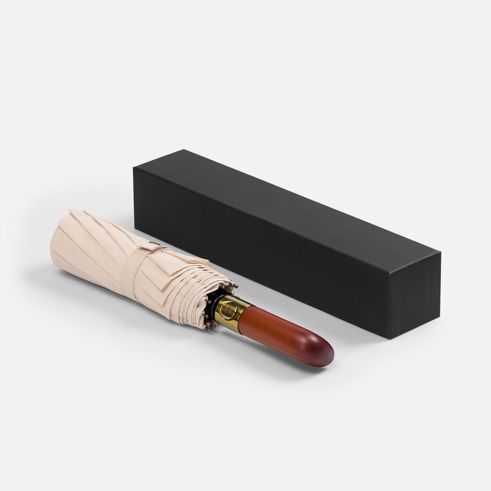 Автоматический механизм позволяет раскрыться за секунду. Плотная ткань купола обеспечивает высокую прочность и устойчивость к разрывам, при этом оставаясь легкой. А ручка из натурального дерева обеспечивает комфортный захват и добавляет зонту благородности.