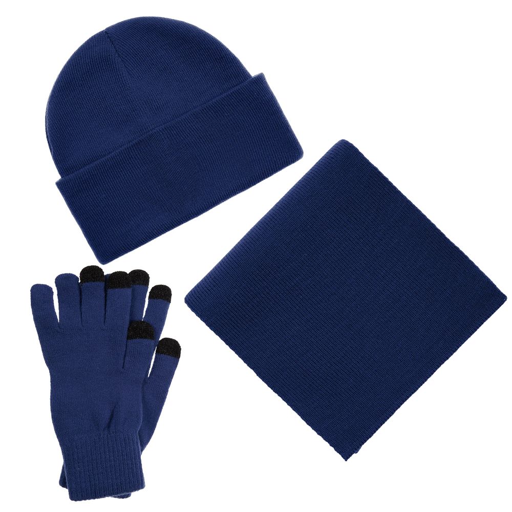 В комплект входят двухслойная шапка с регулируемым отворотом и легкий однослойный шарф из мягкой акриловой пряжи, сохраняющие тепло и защищающие от ветра, а также эргономичные перчатки со специальными токопроводящими волокнами на кончиках пальцев, позволяющие свободно пользоваться смартфоном даже в холодную погоду. Универсальная цветовая гамма и лаконичный дизайн делают набор органичным дополнением к любой верхней одежде.