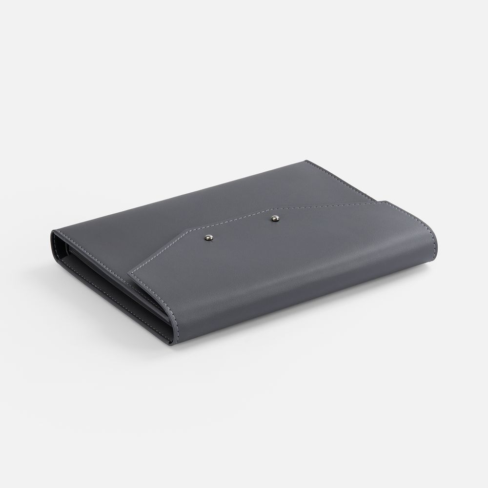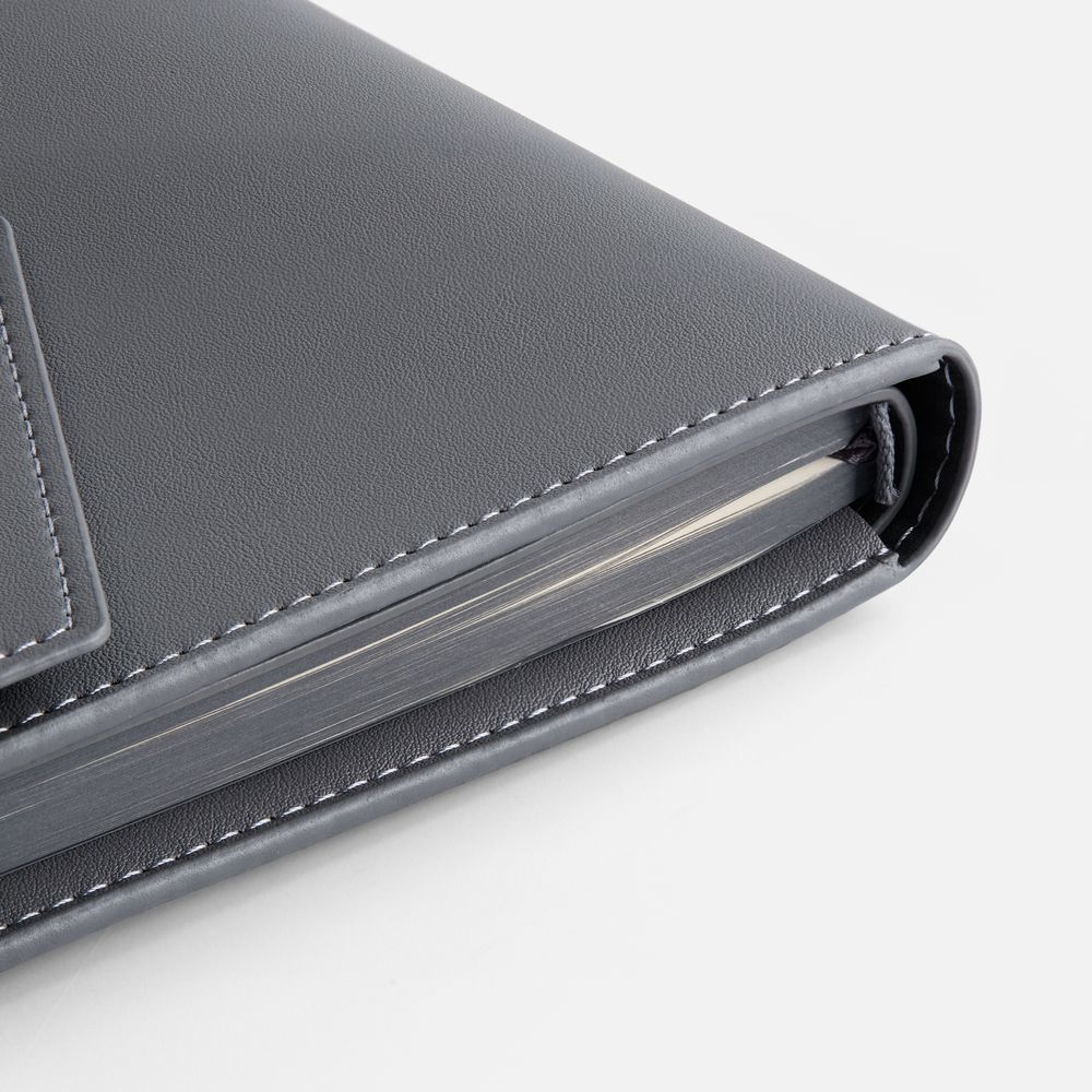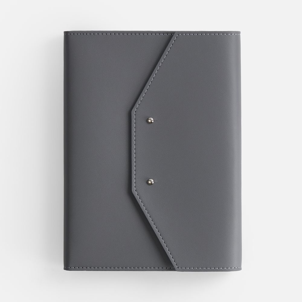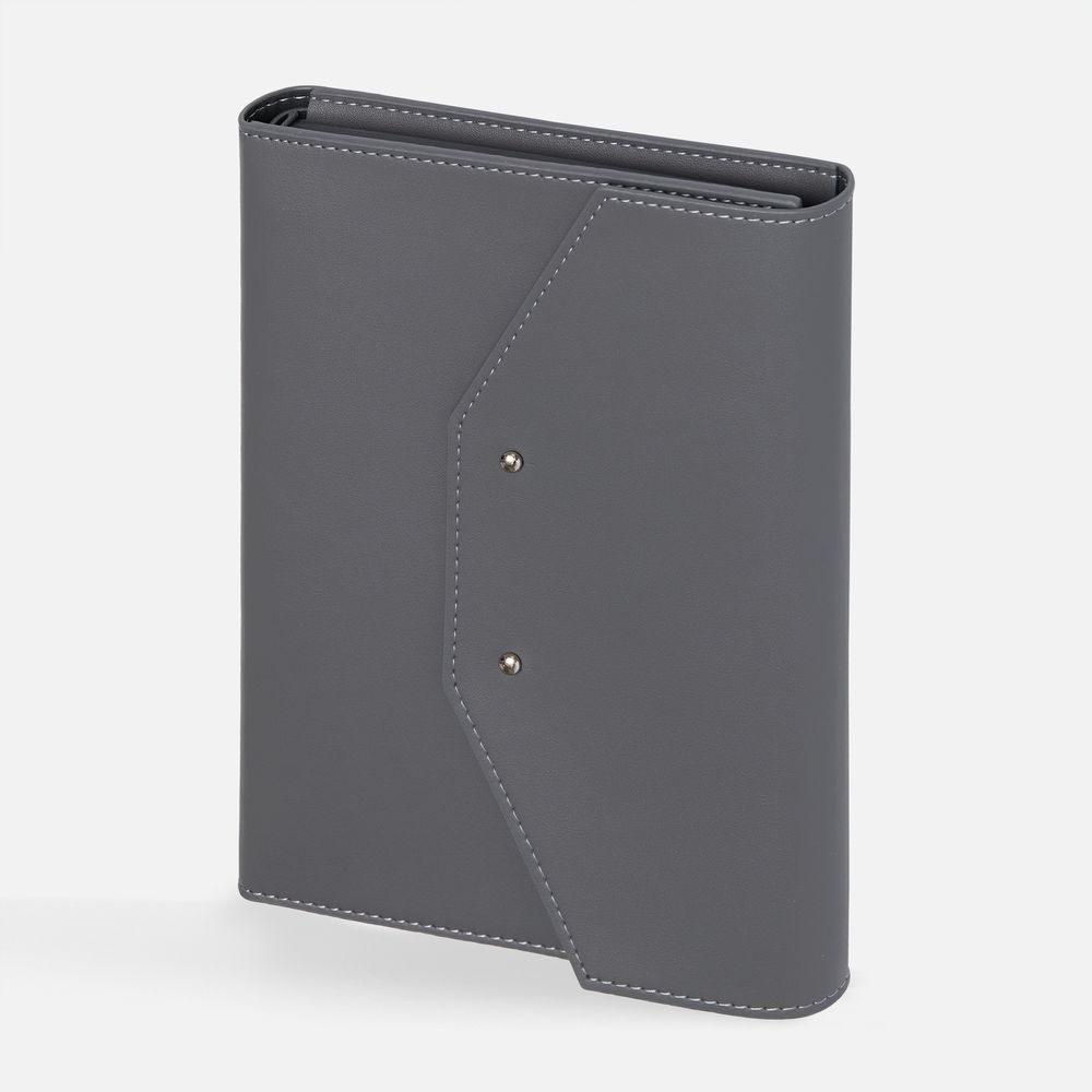 Ежедневник-органайзер в мягком переплете, формат А5+, с карманами для визиток и документов, петлей для ручки. Дополнен ляссе и капталом в цвет обложки. Клапан с прорезями застегивается на кобурные металлические кнопки.