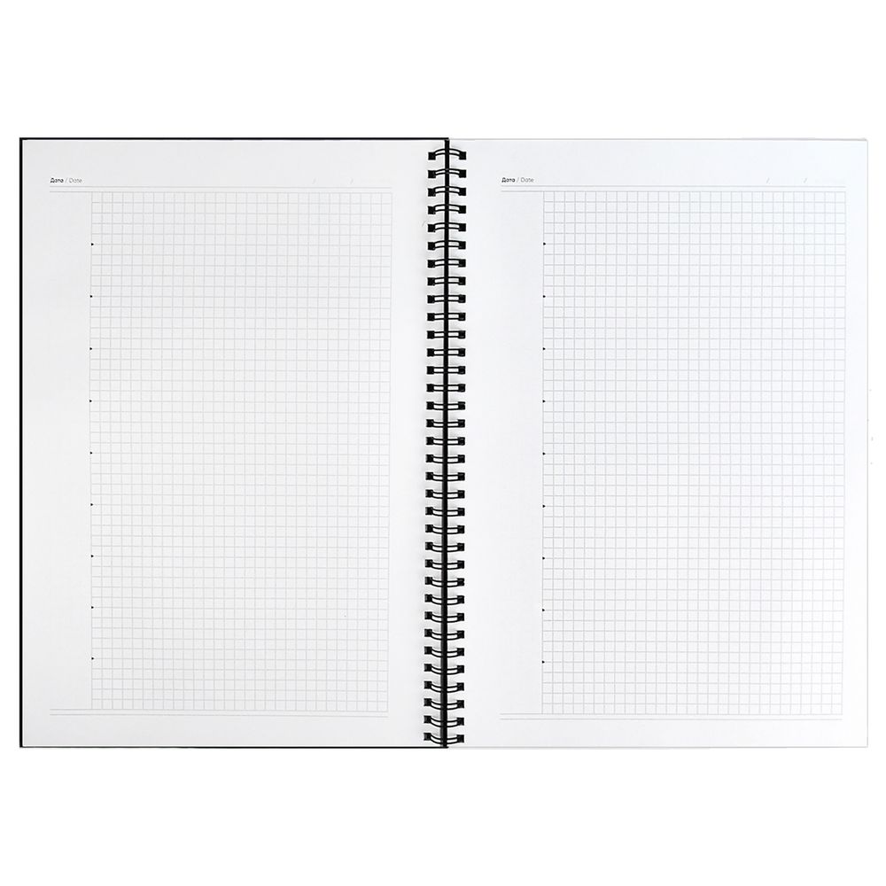 Ежедневник с интегральным переплетом и обстрочкой по периметру на открытой пружине.