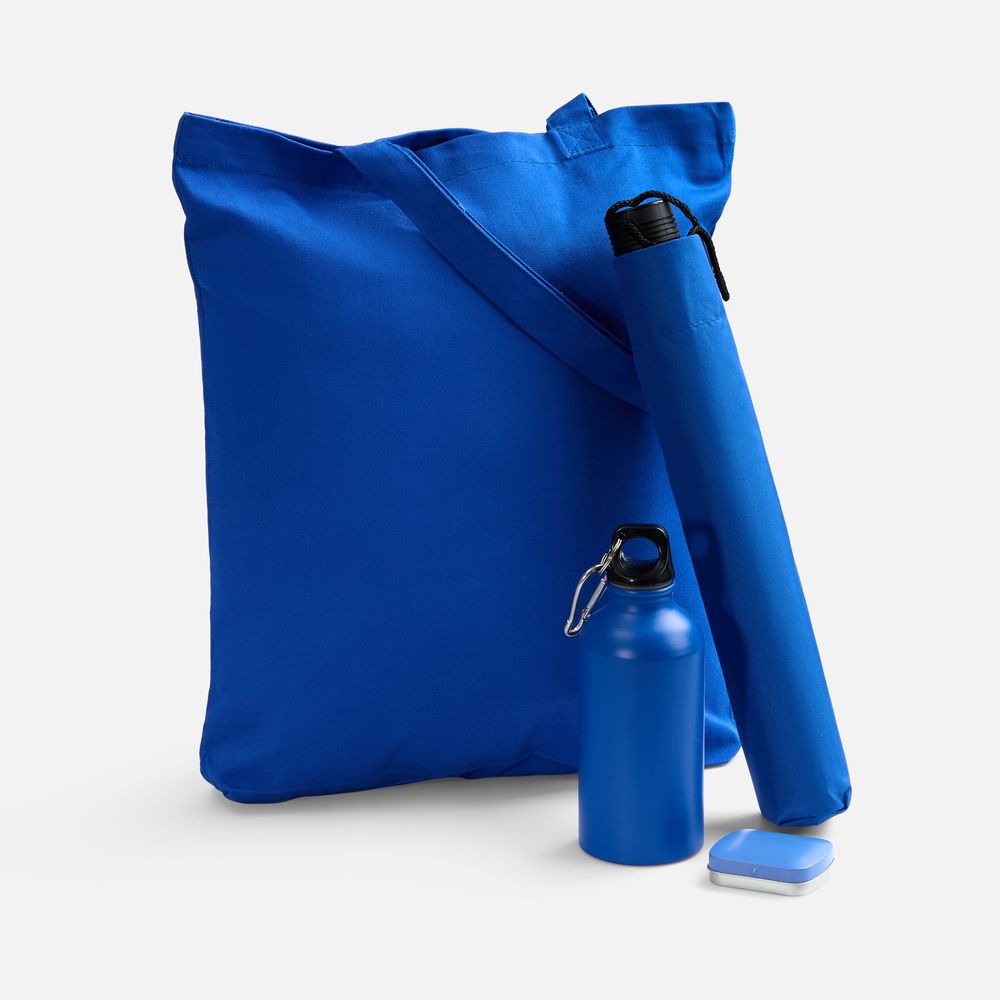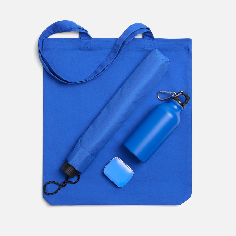 Размеры: сумка: 35х38х5 см; бутылка: диаметр 6,5 см, высота 17,5 см; длина зонта в сложении: 34,5 см; конфеты: 6,2х5х1,5 см