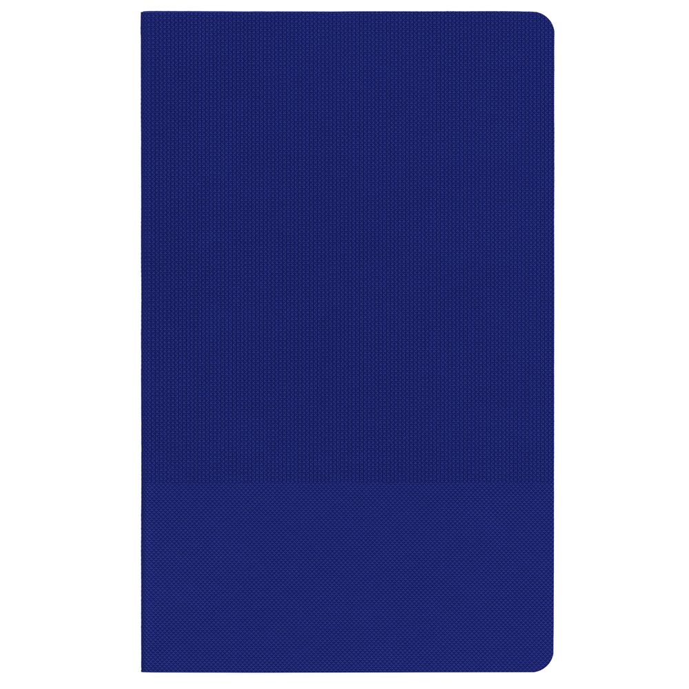 Ежедневник с гибкой обложкой, выполнен из материала Canyon, синий НН, дополнен ляссе в цвет обложки. Блинтовое тиснение на обложке создает эффект вязаного полотна.