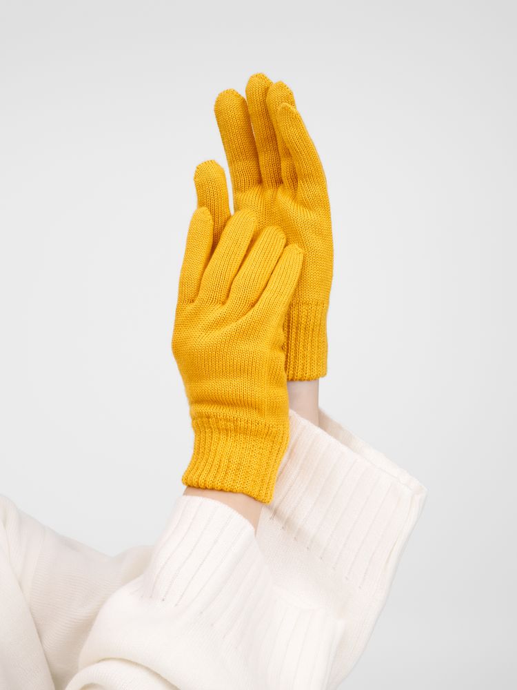 Мягкие полушерстяные перчатки. Аккуратная резинка на манжете обеспечивает комфортную посадку, а универсальный однотонный дизайн легко сочетается с любой верхней одеждой.