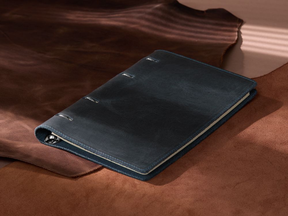 Ежедневник со съемным блоком на кольцах, выполнен из натуральной кожи.