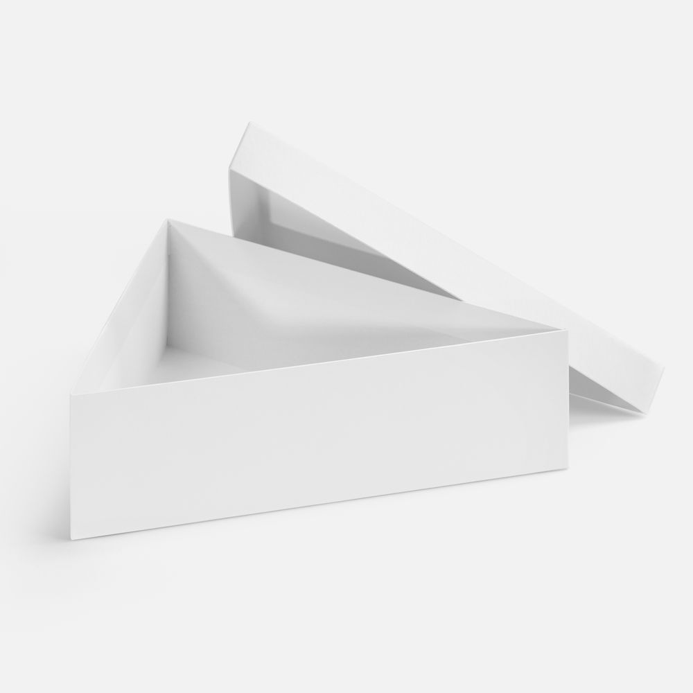 Нетипичная форма коробки привлекает внимание и может сделать подарок более запоминающимся. Треугольник ассоциируется с динамичностью, оригинальностью и креативностью, что может стать важным элементом позиционирования. Изготовлена из переплетного картона 1,5 мм, кашированного дизайнерской бумагой TPG Metallic Soft White.