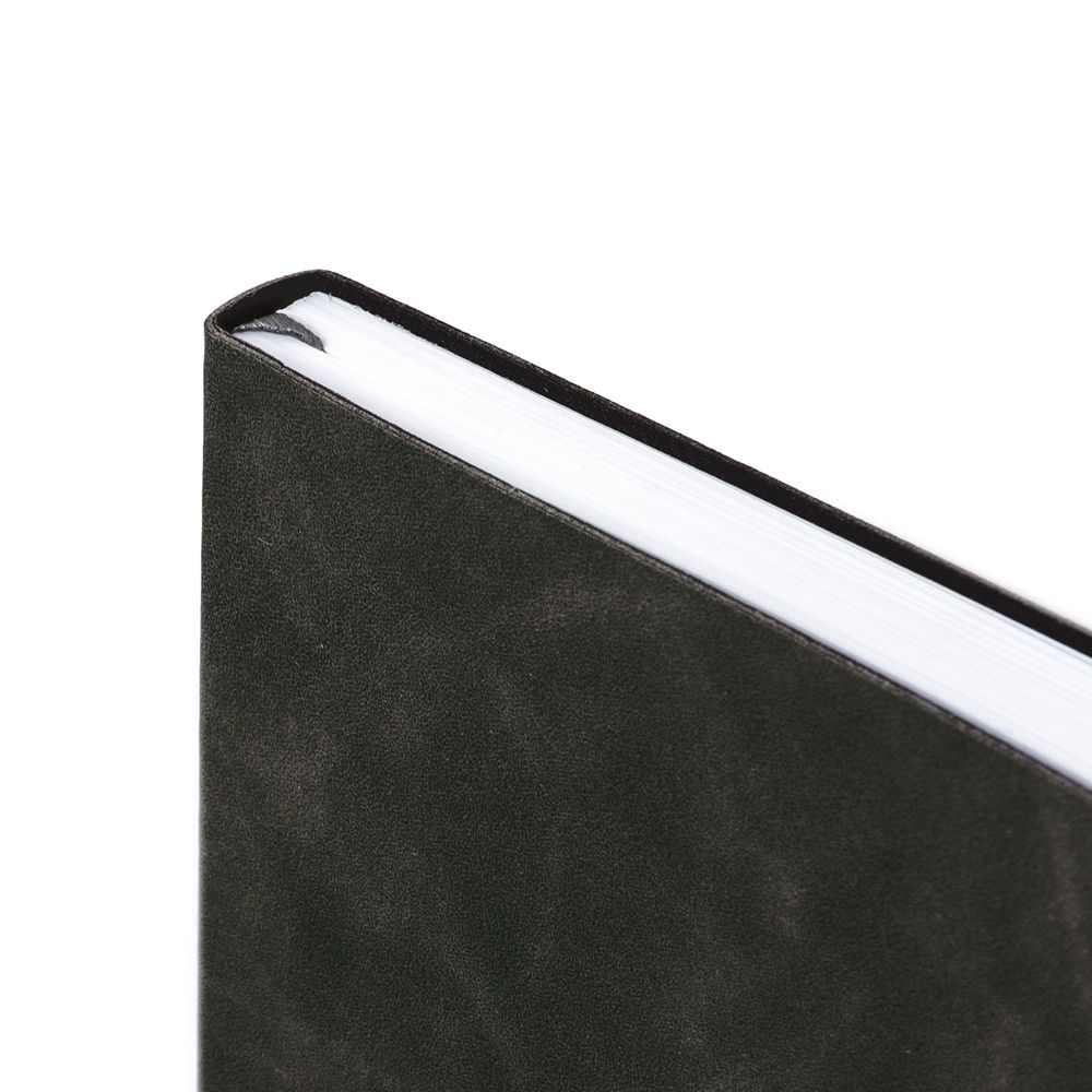 Ежедневник с гибкой обложкой, выполнен из материала Nubuck Touch, черный АА, дополнен ляссе и петлей-резинкой для ручки черного цвета.