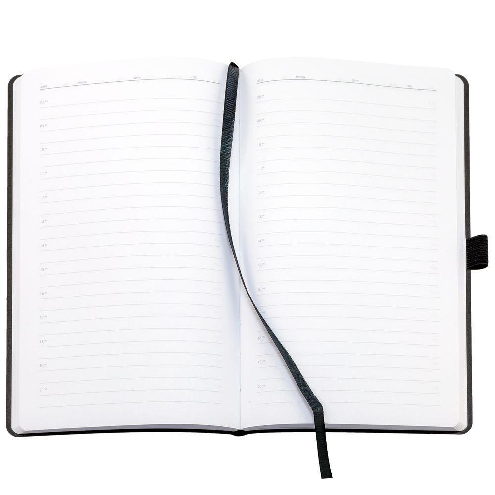 Ежедневник с гибкой обложкой, выполнен из материала Nubuck Touch, зеленый FF, дополнен ляссе и петлей-резинкой для ручки черного цвета.