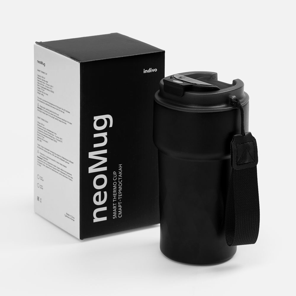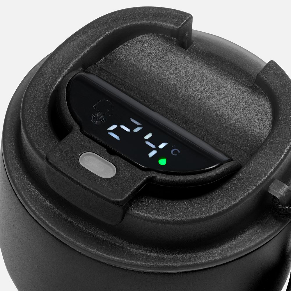 Смарт-термостакан neoMug показывает температуру напитка на сенсорном ЖК-дисплее — точные данные собирает встроенный в крышку датчик.