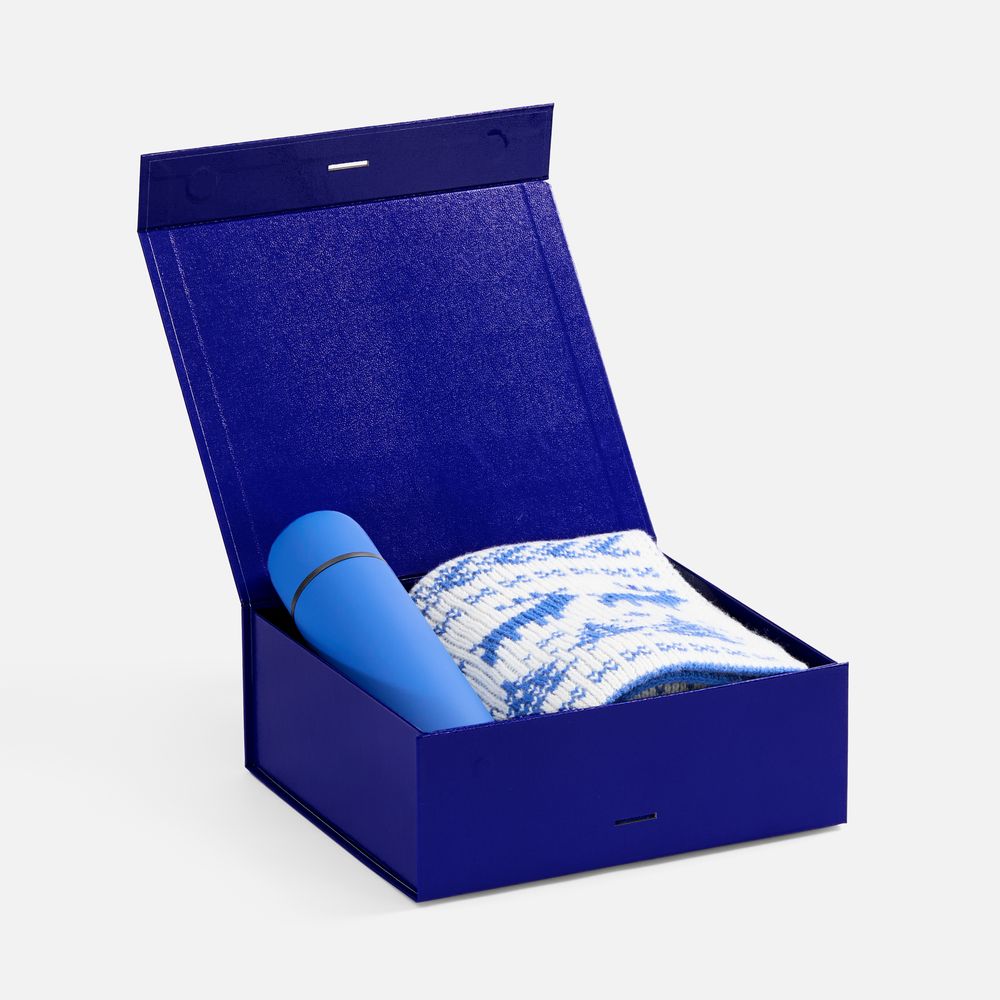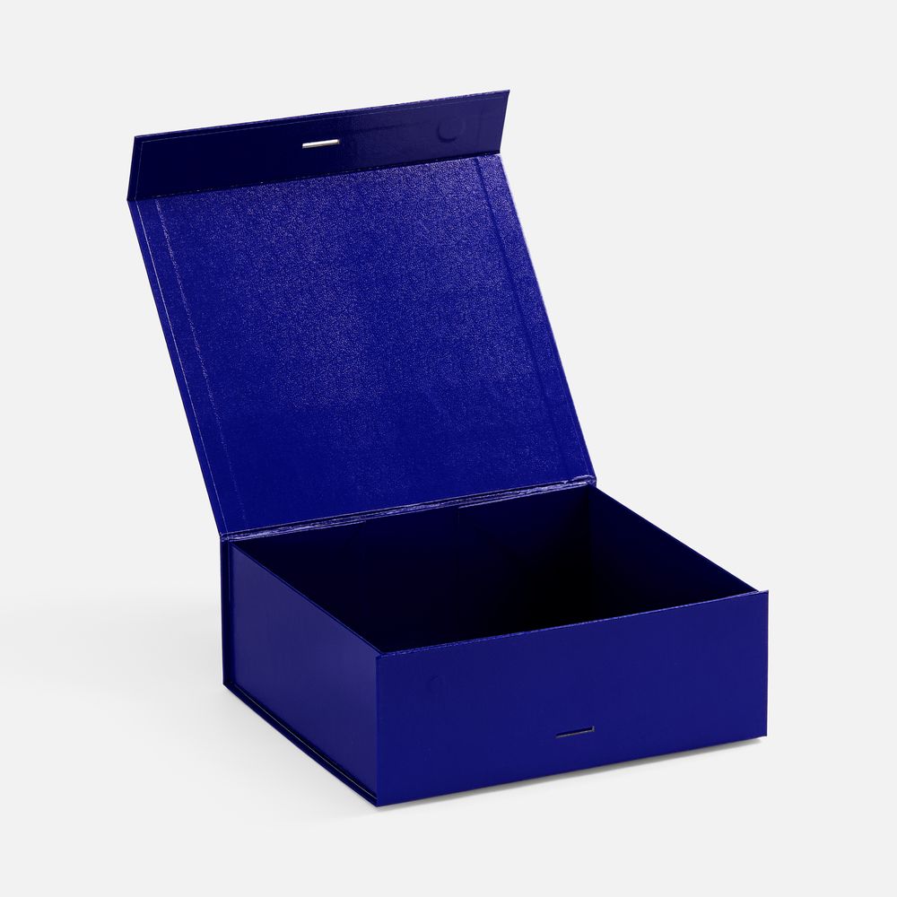 Коробка из переплетного картона с лайнером, ламинированым полуглянцевой текстурной пленкой и устойчивого к царапинам. Крышка на двух магнитах дополнительно фиксируется репсовой лентой.Толщина картона 2 мм. Длина ленты 80 см, ширина ленты 2,5 см. Поставляется в плоском виде. Сборка осуществляется на скотч.