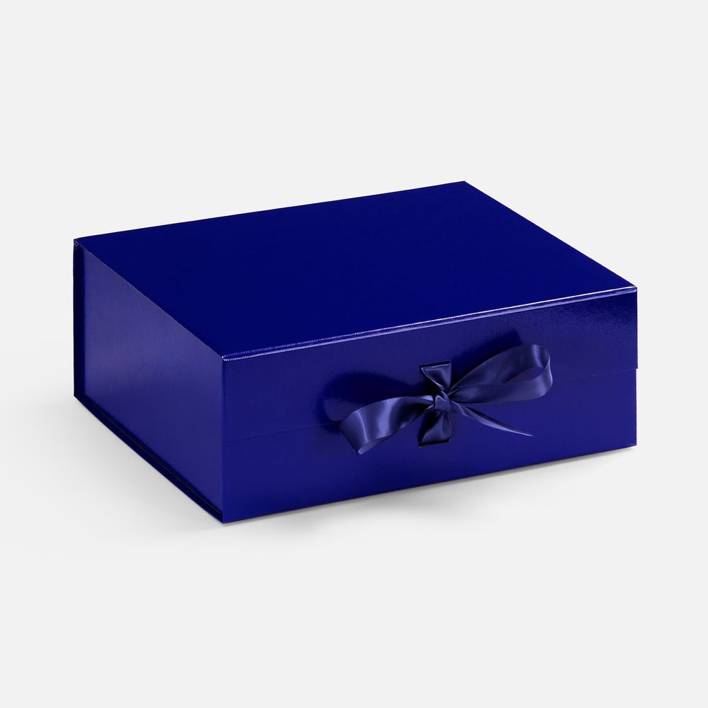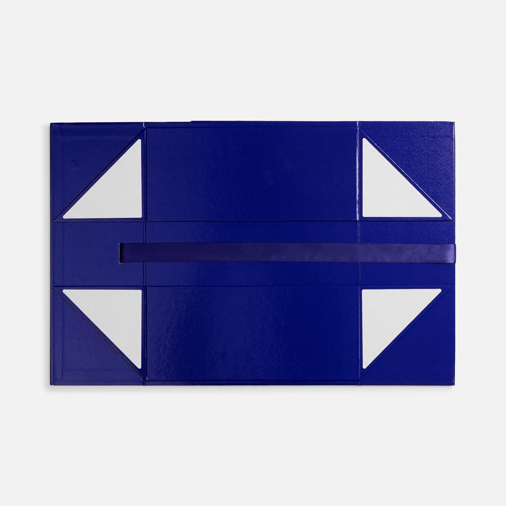 Коробка из переплетного картона с лайнером, ламинированым полуглянцевой текстурной пленкой и устойчивого к царапинам. Крышка на двух магнитах дополнительно фиксируется репсовой лентой.Толщина картона 2 мм. Поставляется в плоском виде. Сборка осуществляется на скотч.