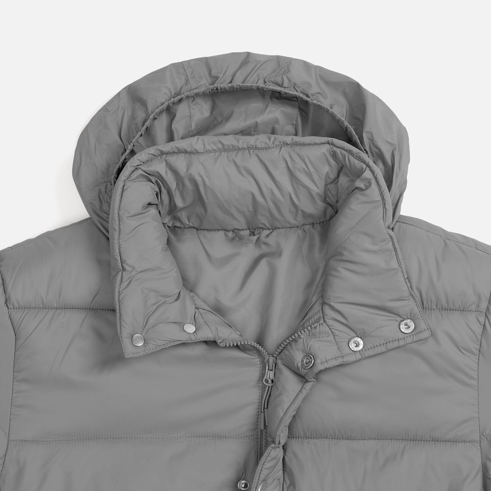 Капюшон без подкладки убирается в воротник и плотно фиксируется на потайные кнопки