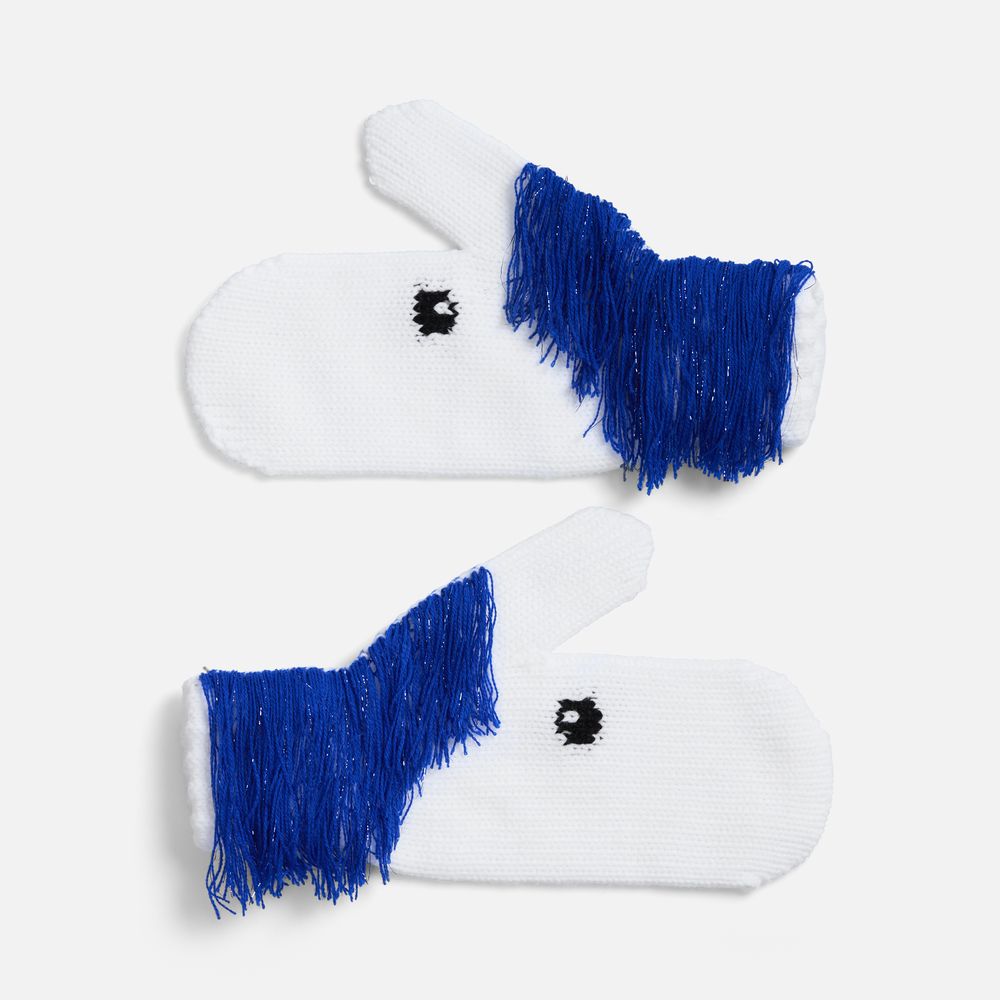 «Игогошки» — веселые варежки прямиком из детства! В такой дружной компании сразу хочется побежать на новогоднюю елку, лихо прокатиться с горки или поиграть в снежки. Грива у этих лошадок игриво колышется яркой бахромой на белоснежном фоне, а озорные глазки так и влюбляют в себя — такой задор сразу передается счастливому обладателю варежек, стоит их только надеть!