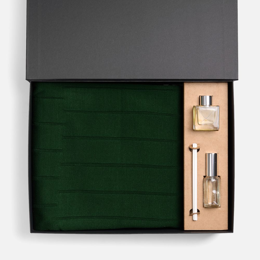Мягкий плед с элегантным узором подарит комфорт и тепло, а стильный диффузор наполнит пространство нежными, свежими нотами, превращая каждый момент в маленький ритуал наслаждения.
