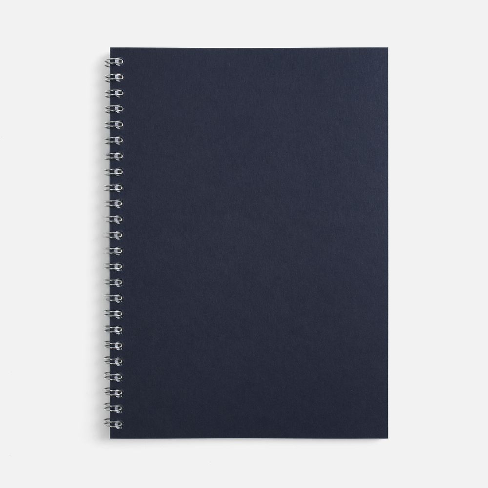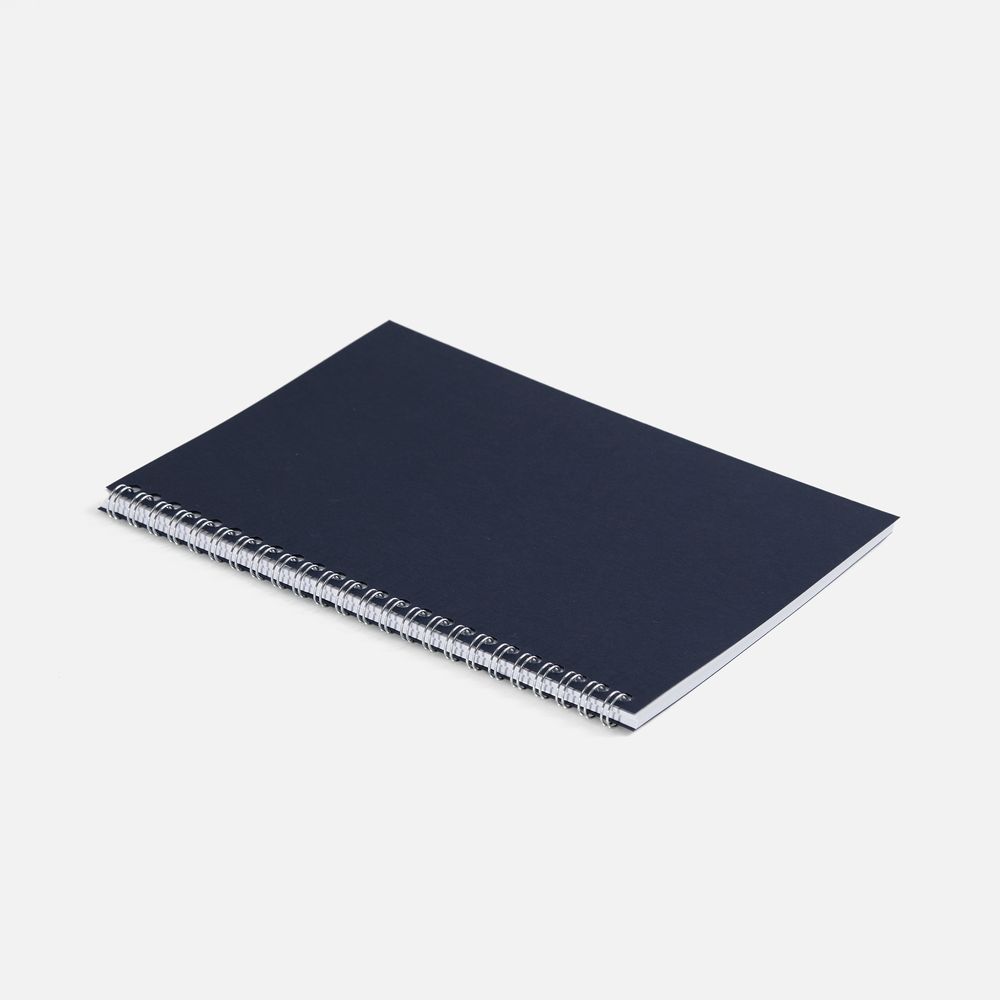 Блокнот формата А5 в клетку на пружине с цветной обложкой. Обложка из картона Macedonia Navy синего цвета плотностью 260 г/м². Блок из белой бумаги плотностью 70 г/м², 50 листов.