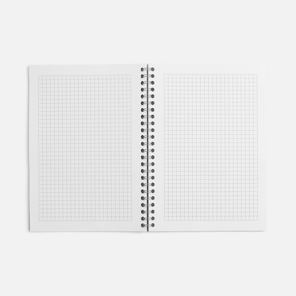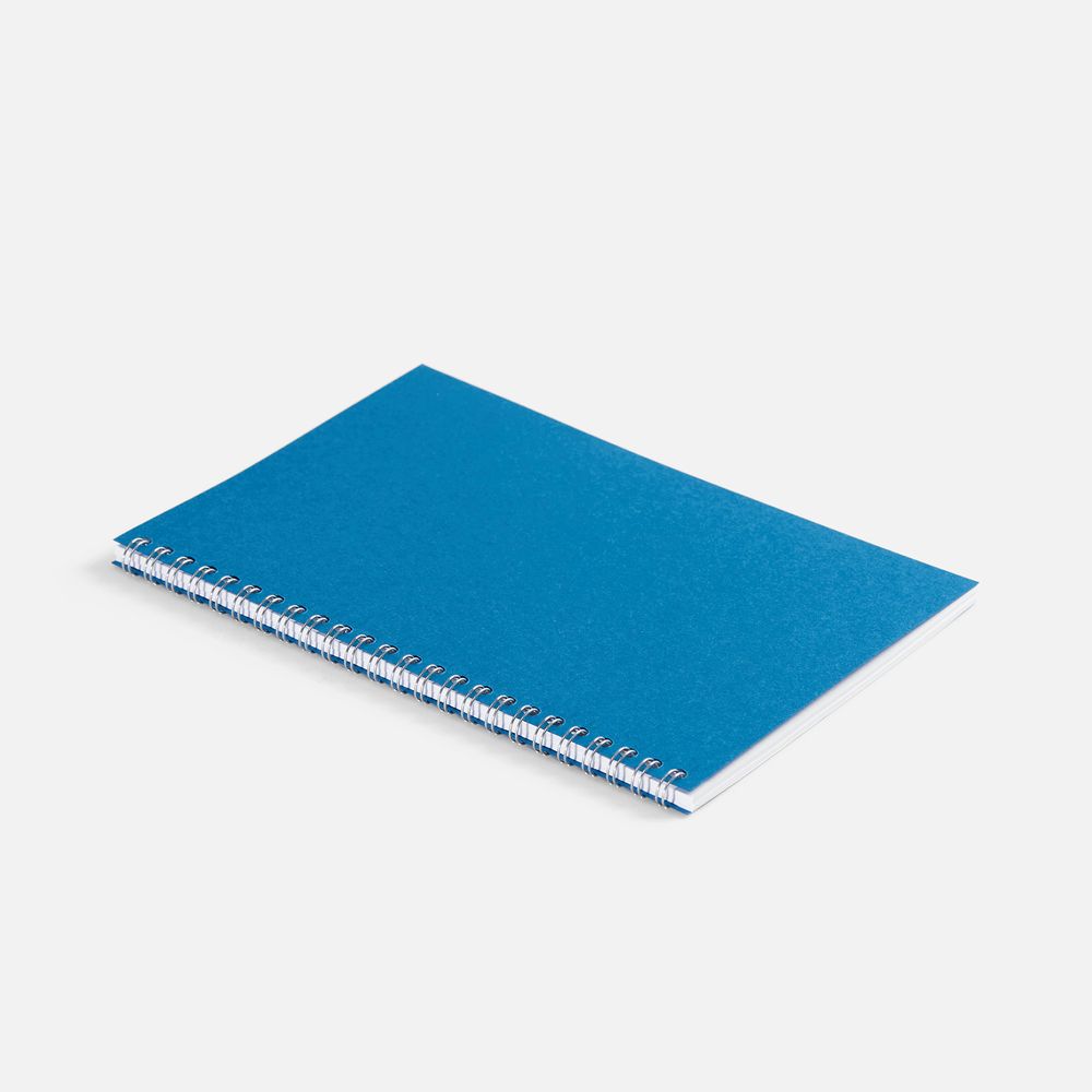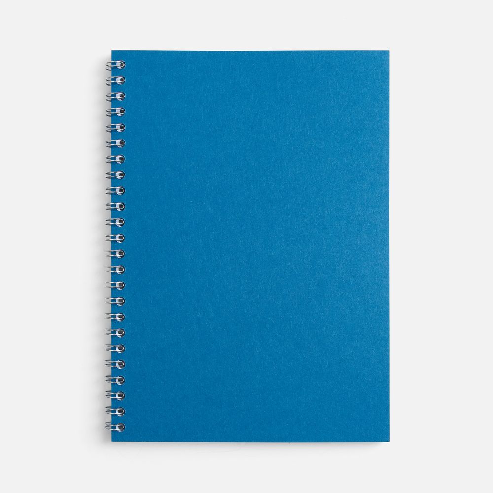 Блокнот формата А5 в клетку на пружине с цветной обложкой. Обложка из картона Macedonia Deep Blue синего цвета плотностью 260 г/м². Блок из белой бумаги плотностью 70 г/м², 50 листов.