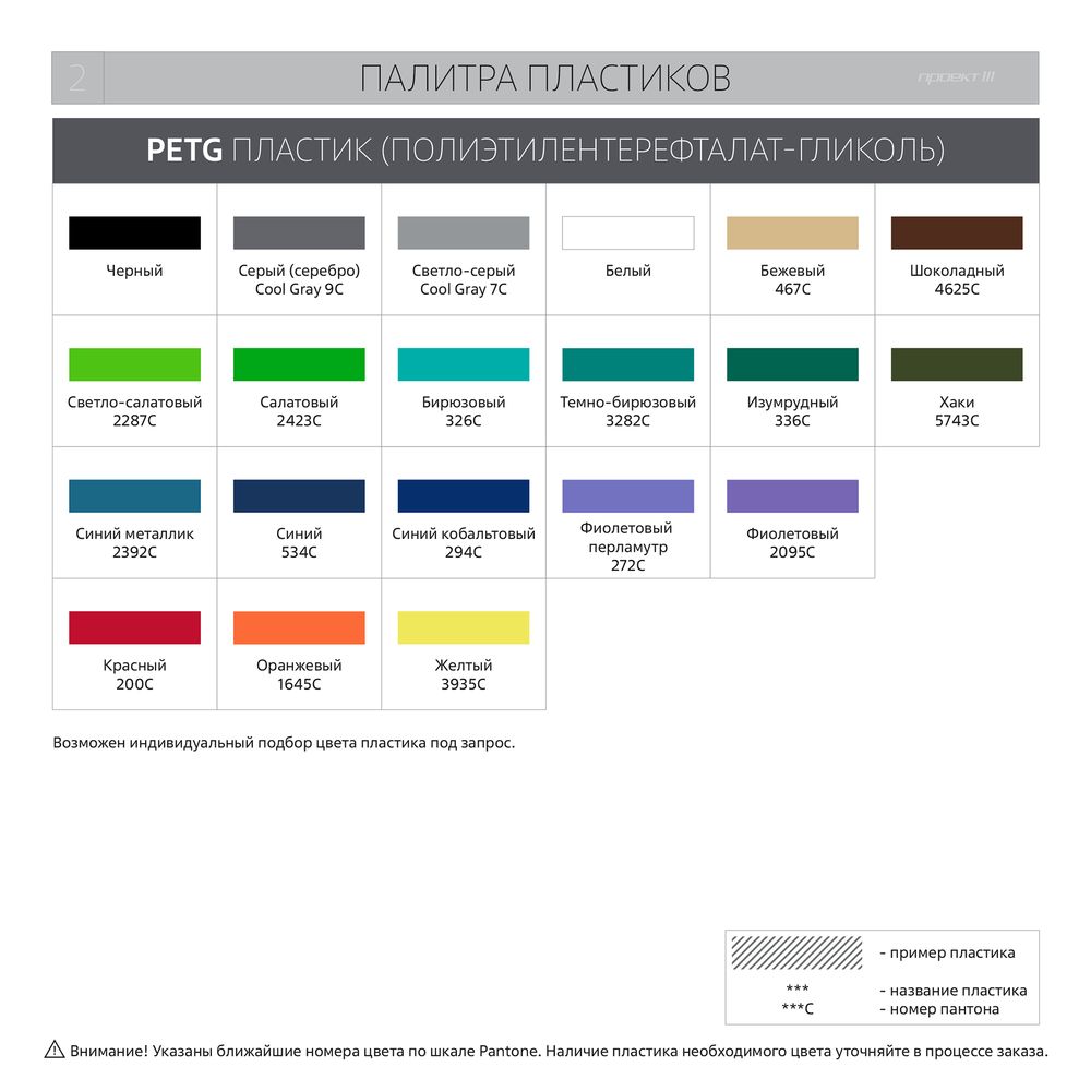 • Цвет и тип пластика. Варианты цветов можно посмотреть в разделе «Фотографии».
