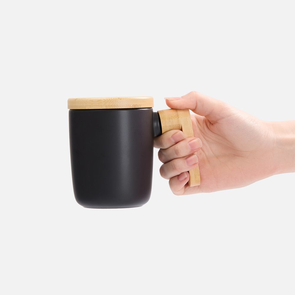 Стильная кружка с крышкой и ручкой из бамбука станет самой любимой на полке! Это идеальный компаньон для продуктивного диалога или умиротворяющего уединения.