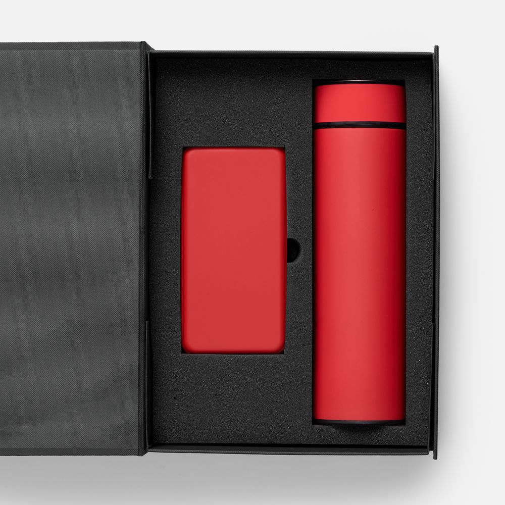 Материал: аккумулятор - пластик; покрытие софт-тач; термос - нержавеющая сталь, 304; покрытие софт-тач; коробка - переплетный картон
