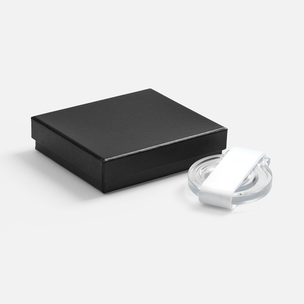 Размеры: 8,7х7,5х1 см; лента: 90х3 см; упаковка: 14х12х3,5 см